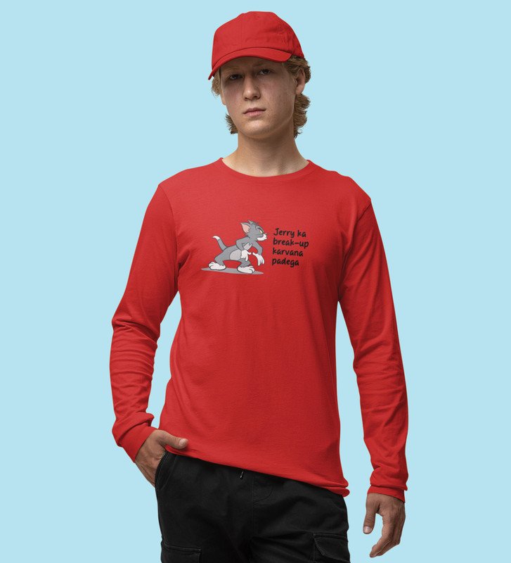 Jerry Is In Danger: (red) Full Sleeve T-Shirt For Singles