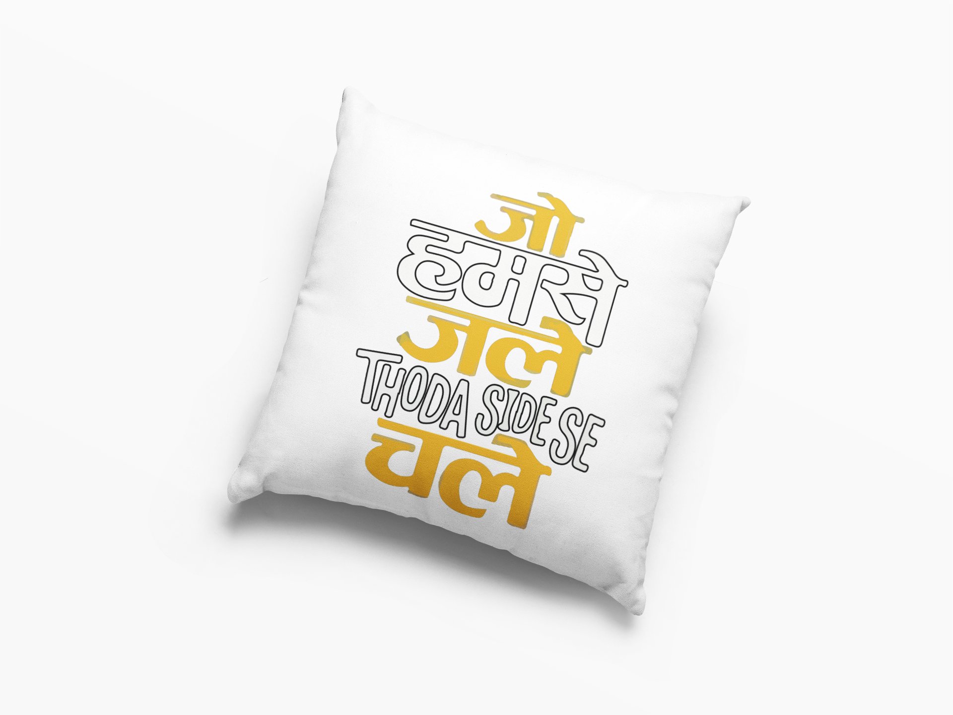 Our Pillow covers has many designs on diffrent themes. This theme is of Dialogue of Bollywood. All have diffrent dialogues of diffrent movies. People who found of Bollywood or Bollywood's Dialogue will love to buy Pillow Covers which have cinema dialogues in it and also will gift it to their close friends, family, relatives. We have a list of dialogue related Pillow Covers to choose from. Grab it now. Made of cotton.