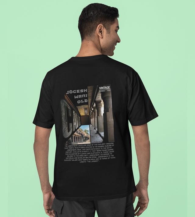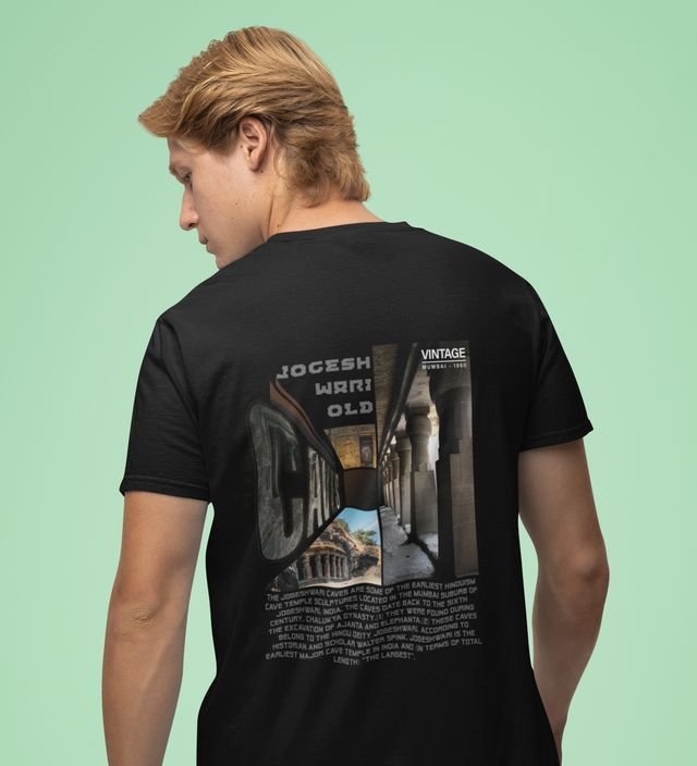 Jogeshwari Caves: Legacy of Mumbai Graphic Printed Black T-Shirt