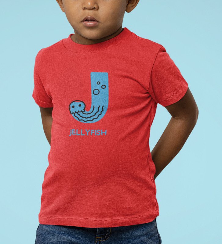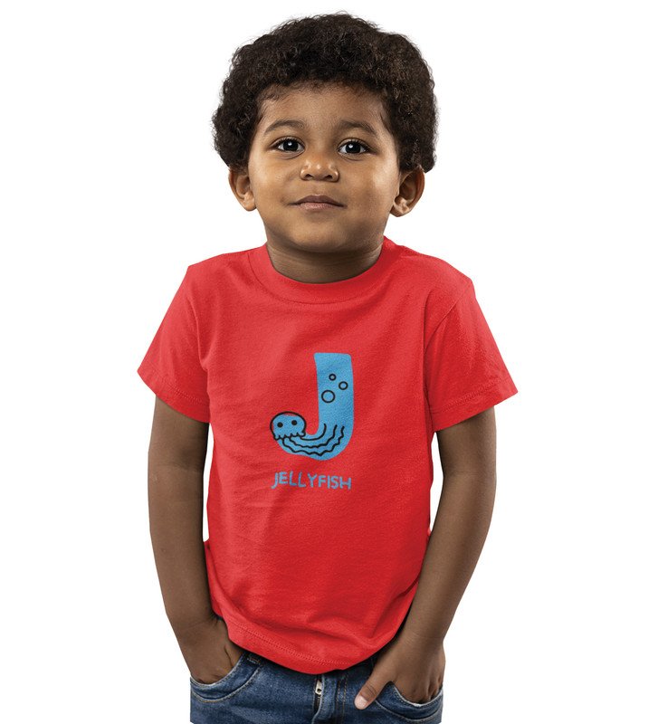 Jolly Jellyfish, Boys Cotton Text Print Tshirt (Red)