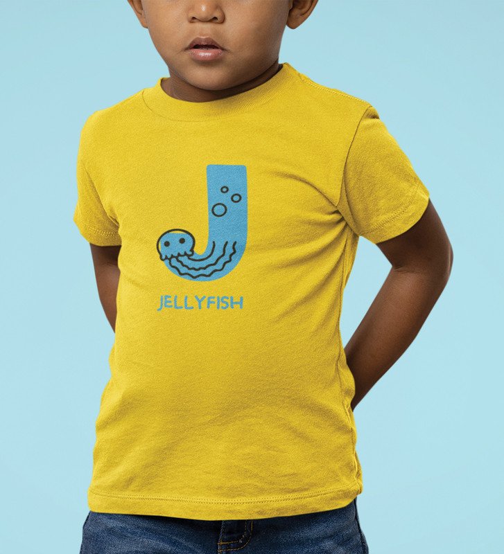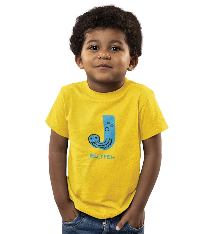 Jolly Jellyfish, Boys Cotton Text Print Tshirt (Yellow)