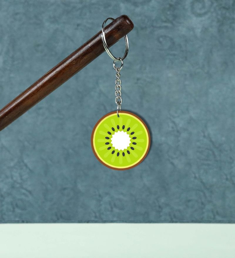 Juicy Kiwi Slice Artwork Design Printed Round Keychain Pack of 2