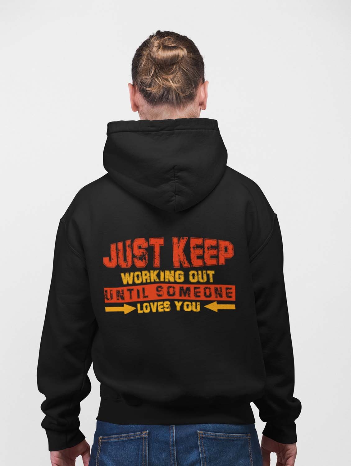 Just Keep Working Out (Red And Yellow) printed artswear black hoodies for winter casual wear specially for Men