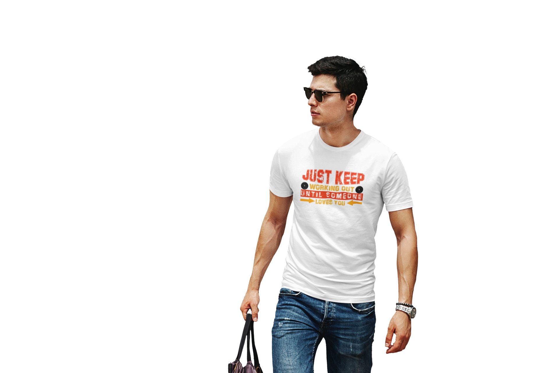 Just Keep Working Out, Until Someone Loves You, (BG Red and Yellow), Round Neck Gym Tshirt (White Tshirt) - Clothes for Gym Lovers - Foremost Gifting Material for Your Friends and Close Ones