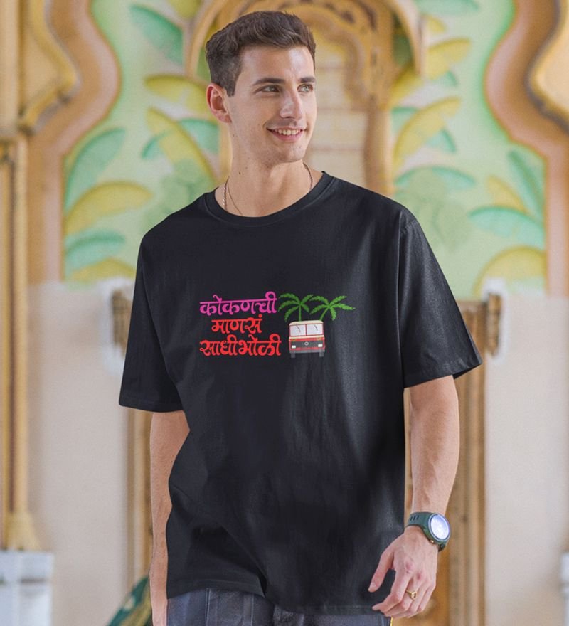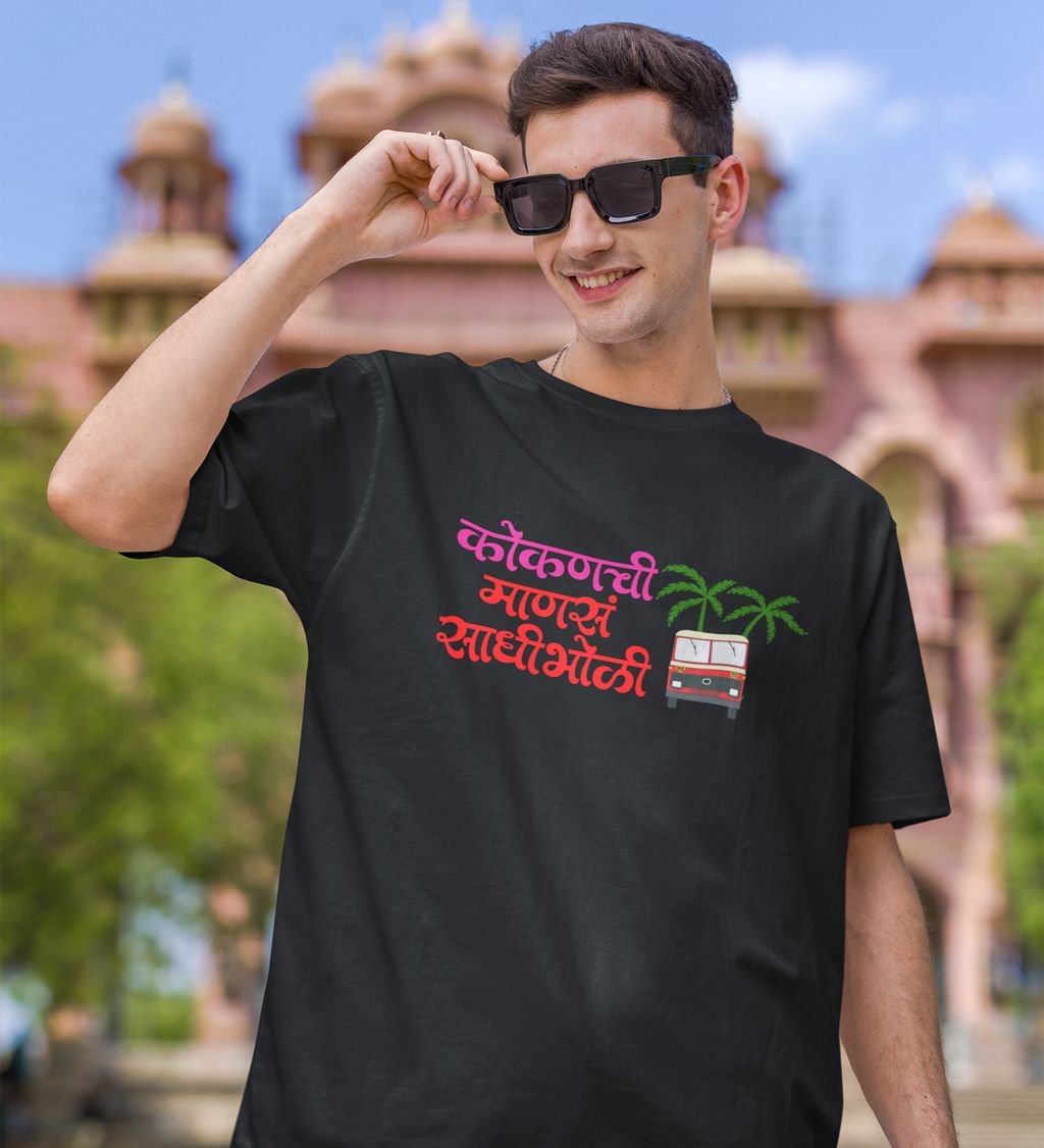 Just Konkani Things Black Round Neck Cotton Half Sleeved Mens T Shirt with Printed Graphics