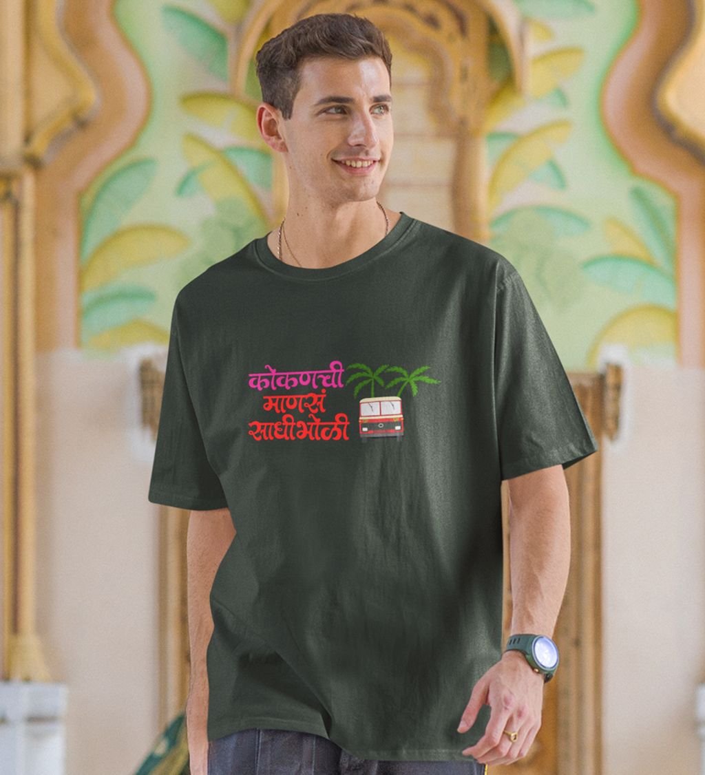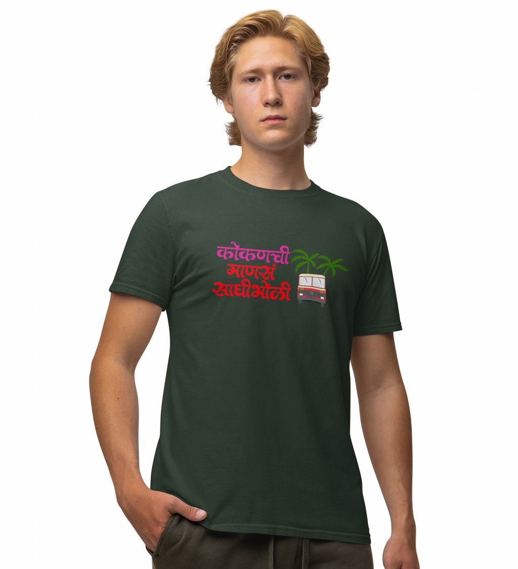 Just Konkani Things Green Round Neck Cotton Half Sleeved Mens T Shirt with Printed Graphics