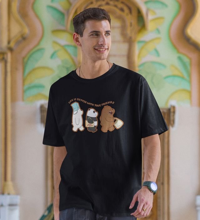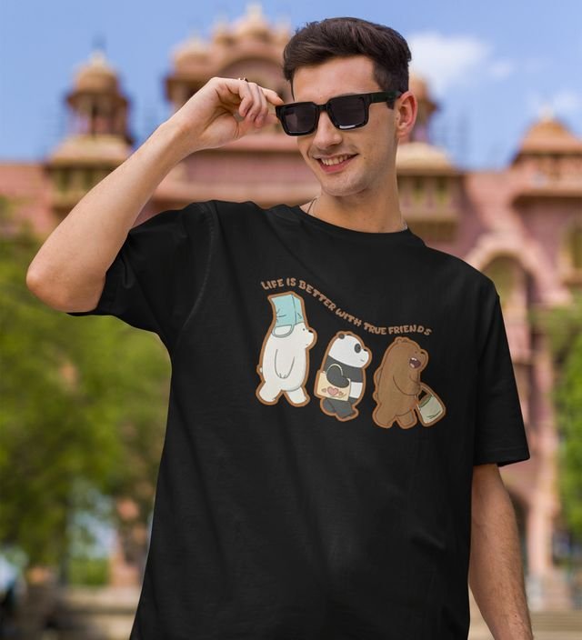 Just Truefriends Black Round Neck Cotton Half Sleeved Men T Shirt with Printed Graphics