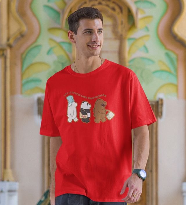 Just Truefriends Red Round Neck Cotton Half Sleeved Men T Shirt with Printed Graphics