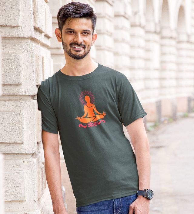 Just Yoga Green Round Neck Cotton Half Sleeved Men T-Shirt with Printed Graphics