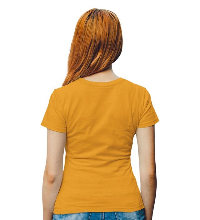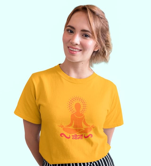Just Yoga Yellow Round Neck Cotton Half Sleeved Women T-Shirt with Printed Graphics