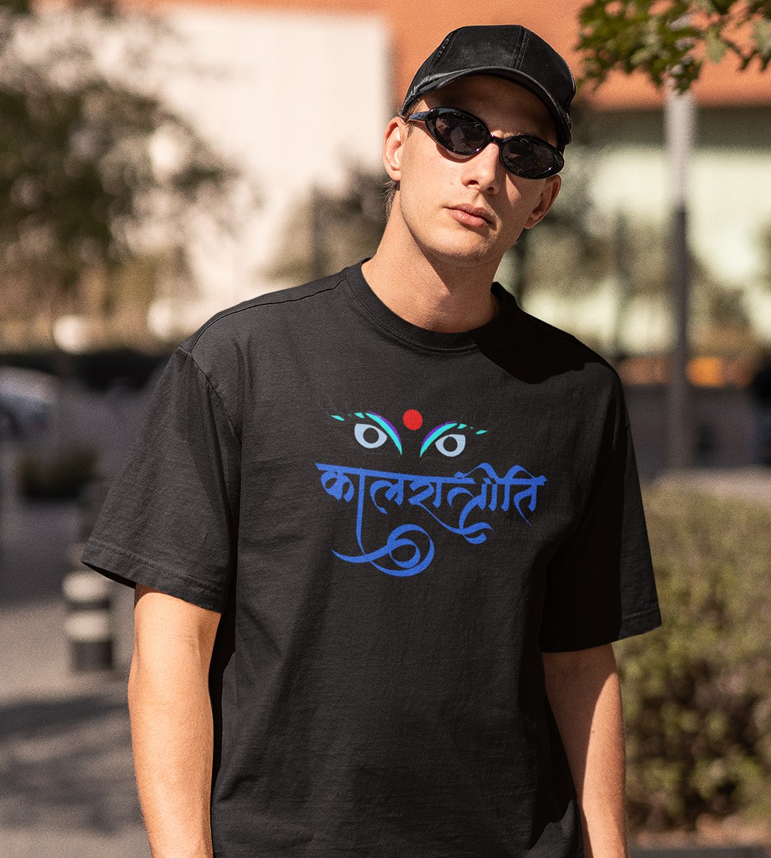 Kaalratrini printed unisex adults round neck cotton half-sleeve black tshirt specially for Navratri festival/ Durga puja