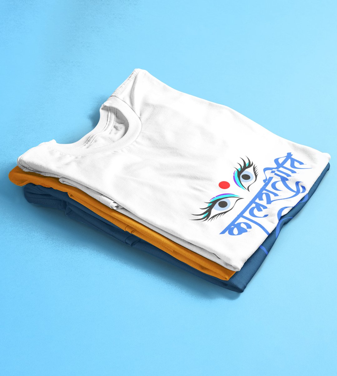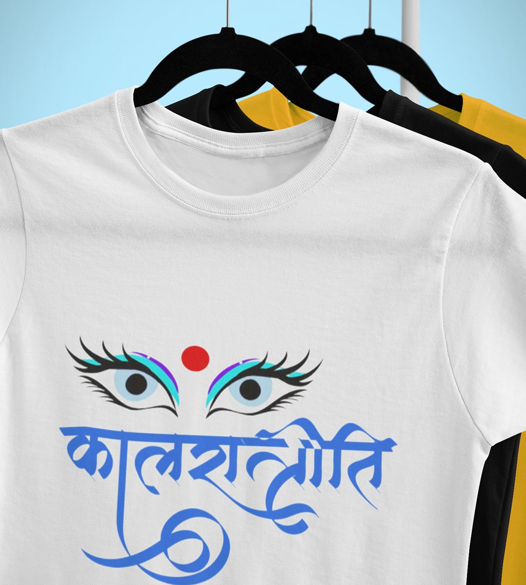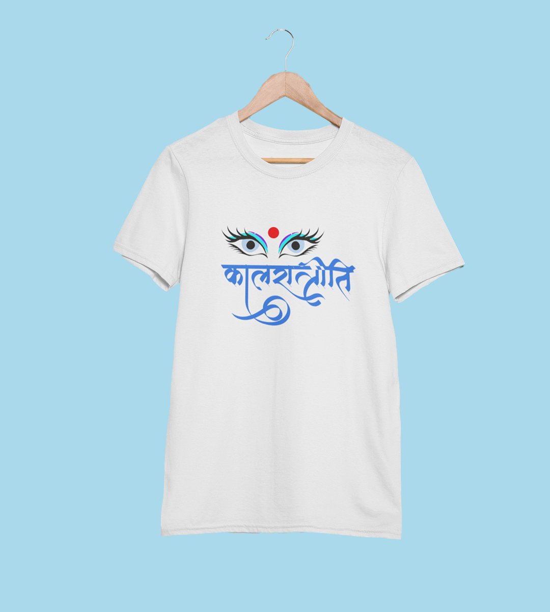Kaalratrini printed unisex adults round neck cotton half-sleeve white tshirt specially for Navratri festival/ Durga puja