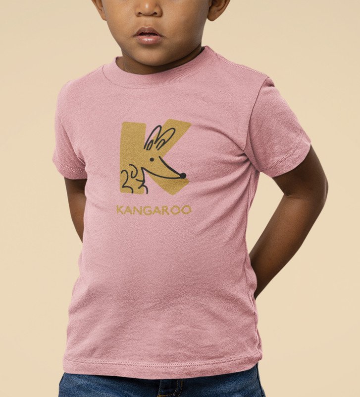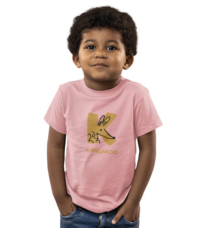 Kangaroo, Printed Cotton Tshirt (Baby pink) for Boys