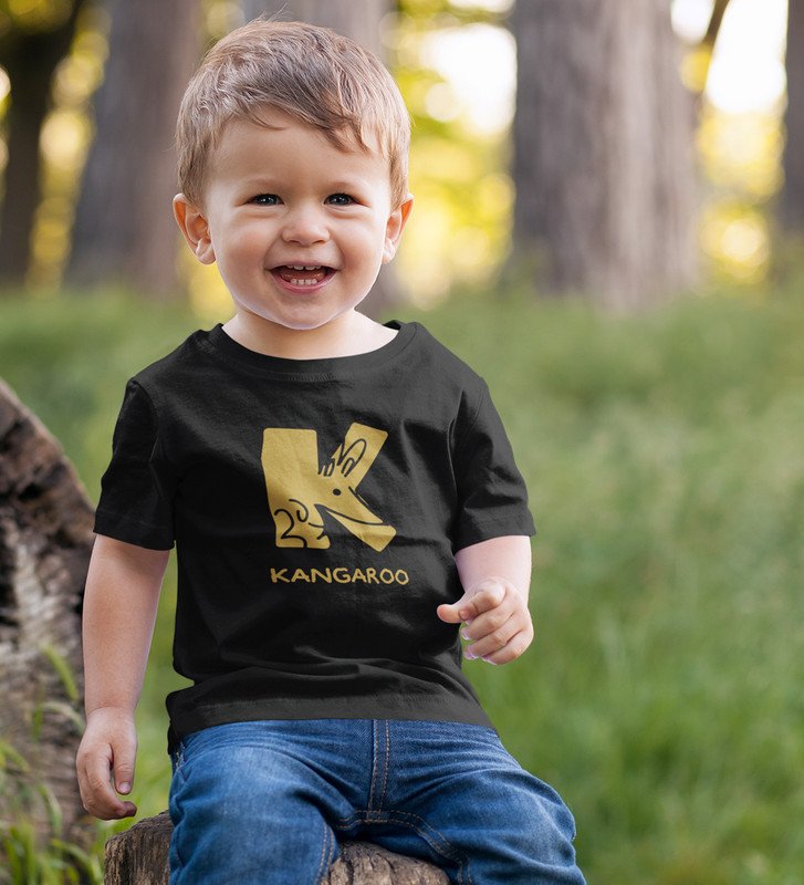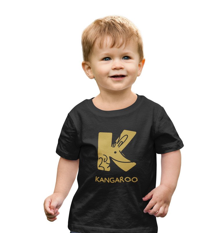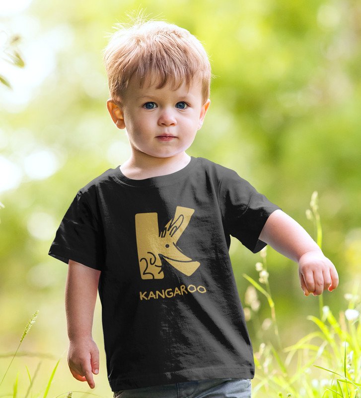 Kangaroo, Printed Cotton Tshirt (black) for Boys