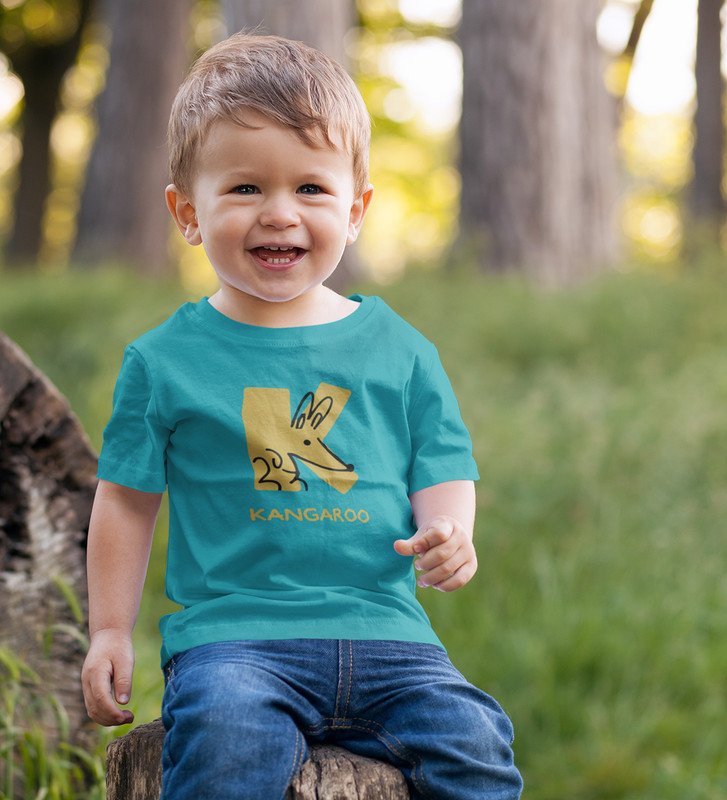 Kangaroo, Printed Cotton tshirt (teal) for Boys