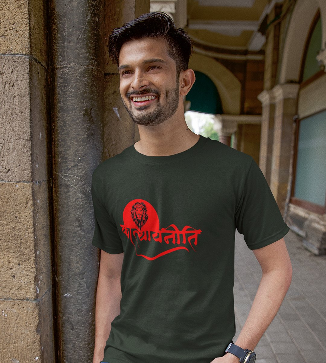 Katyayani printed unisex adults round neck cotton half-sleeve green tshirt specially for Navratri festival/ Durga puja