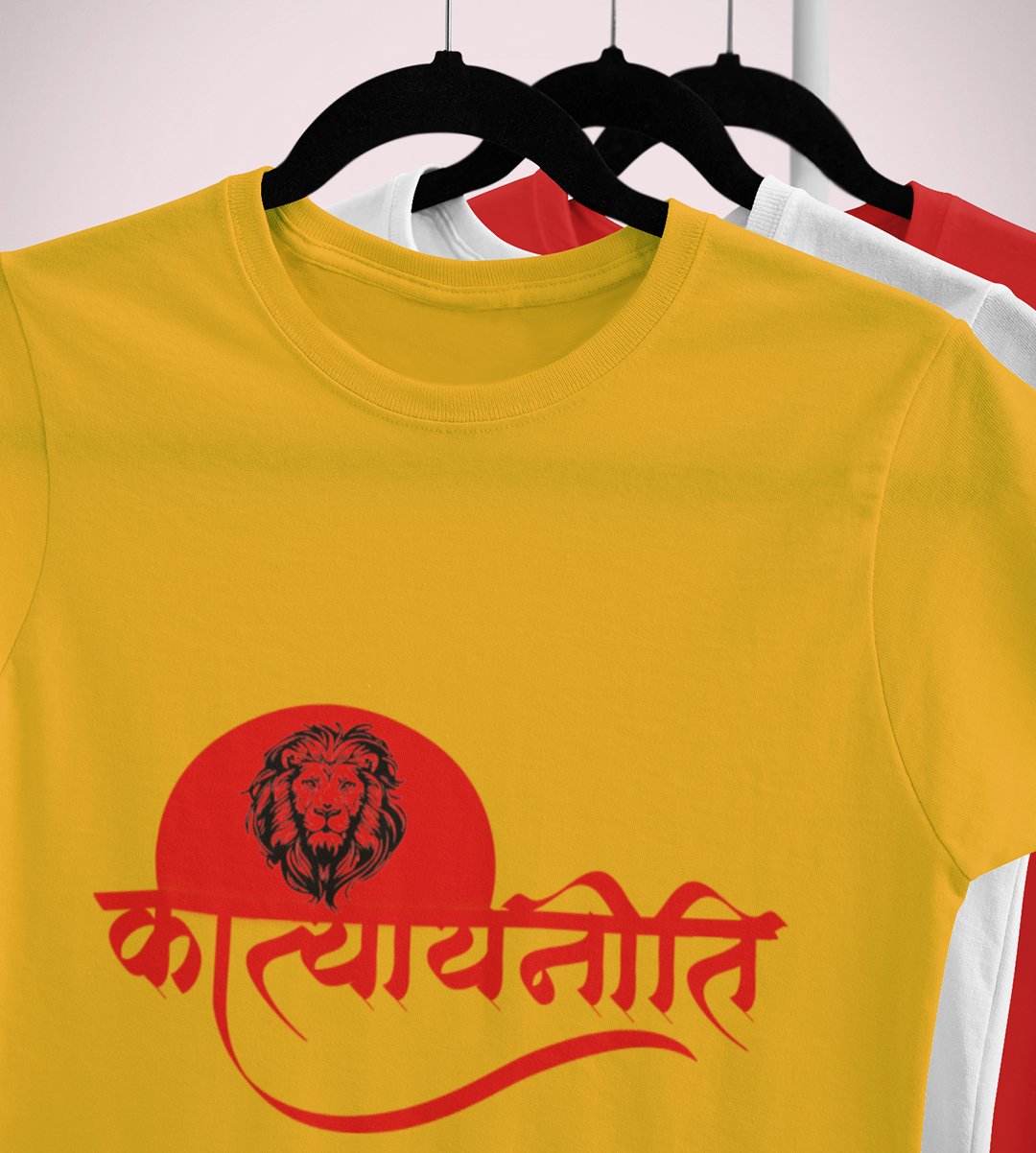Katyayaniti unisex adults round neck cotton half-sleeve yellow tshirt specially for Navratri festival/ Durga puja