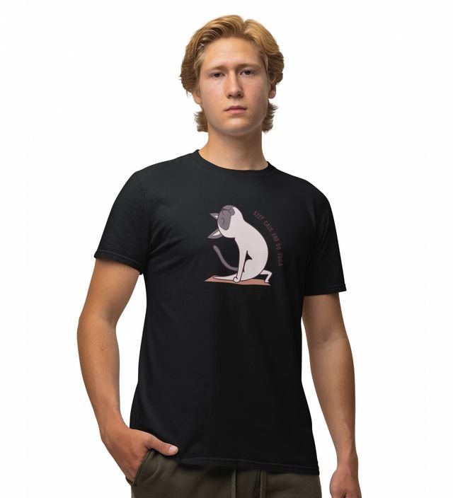 Keep Calm And Do Yoga Black Round Neck Cotton Half Sleeved Men T-Shirt with Printed Graphics