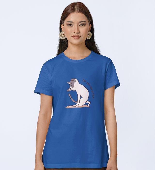 Keep Calm And Do Yoga Blue Round Neck Cotton Half Sleeved Women T-Shirt with Printed Graphics
