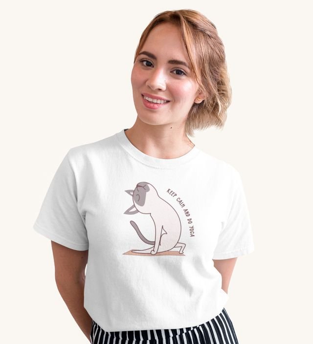 Keep Calm And Do Yoga White Round Neck Cotton Half Sleeved Women T-Shirt with Printed Graphics