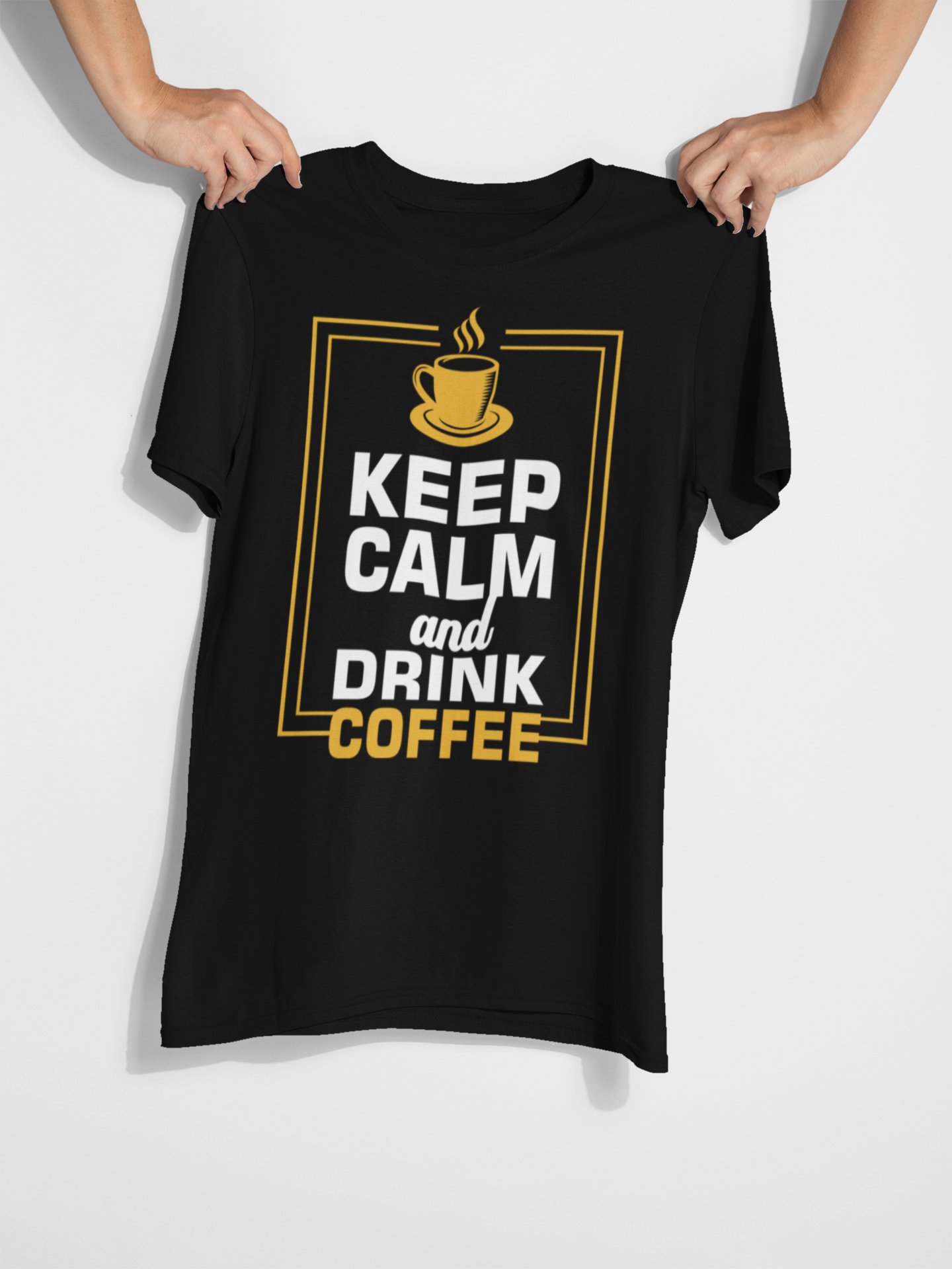 Keep calm and drink Coffee - Black - printed t shirt - comfortable round neck cotton.