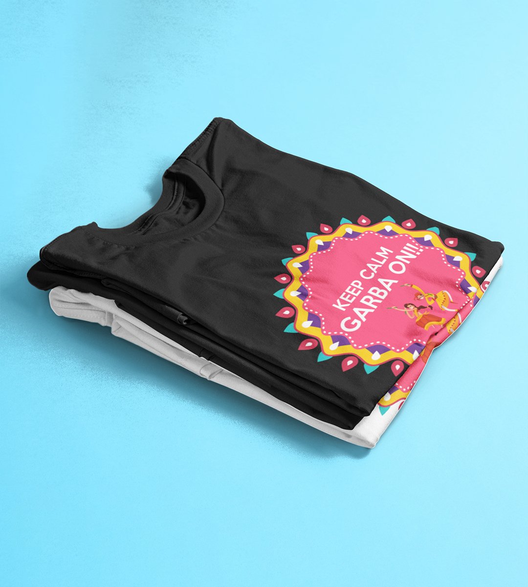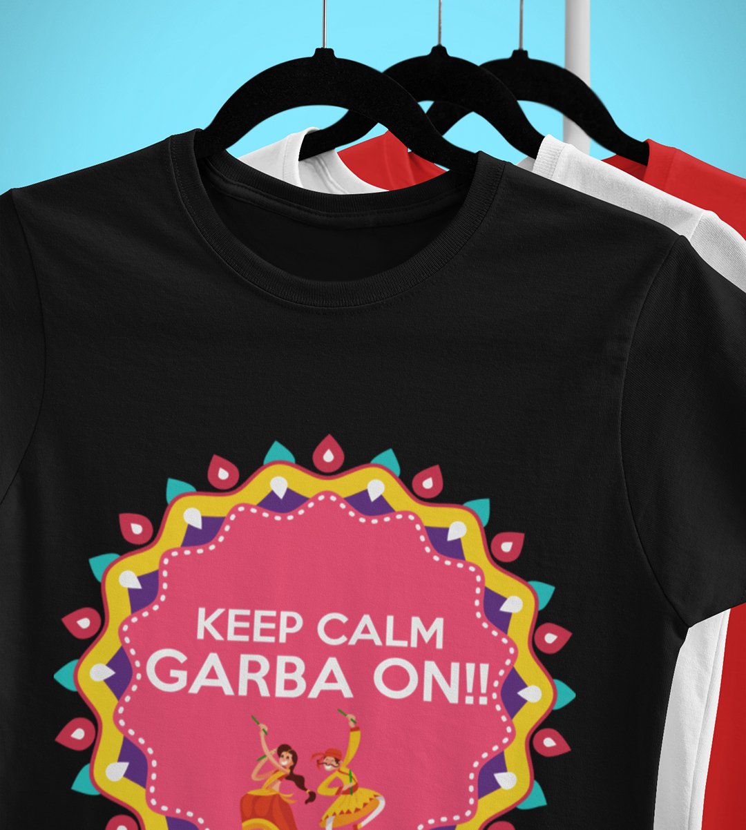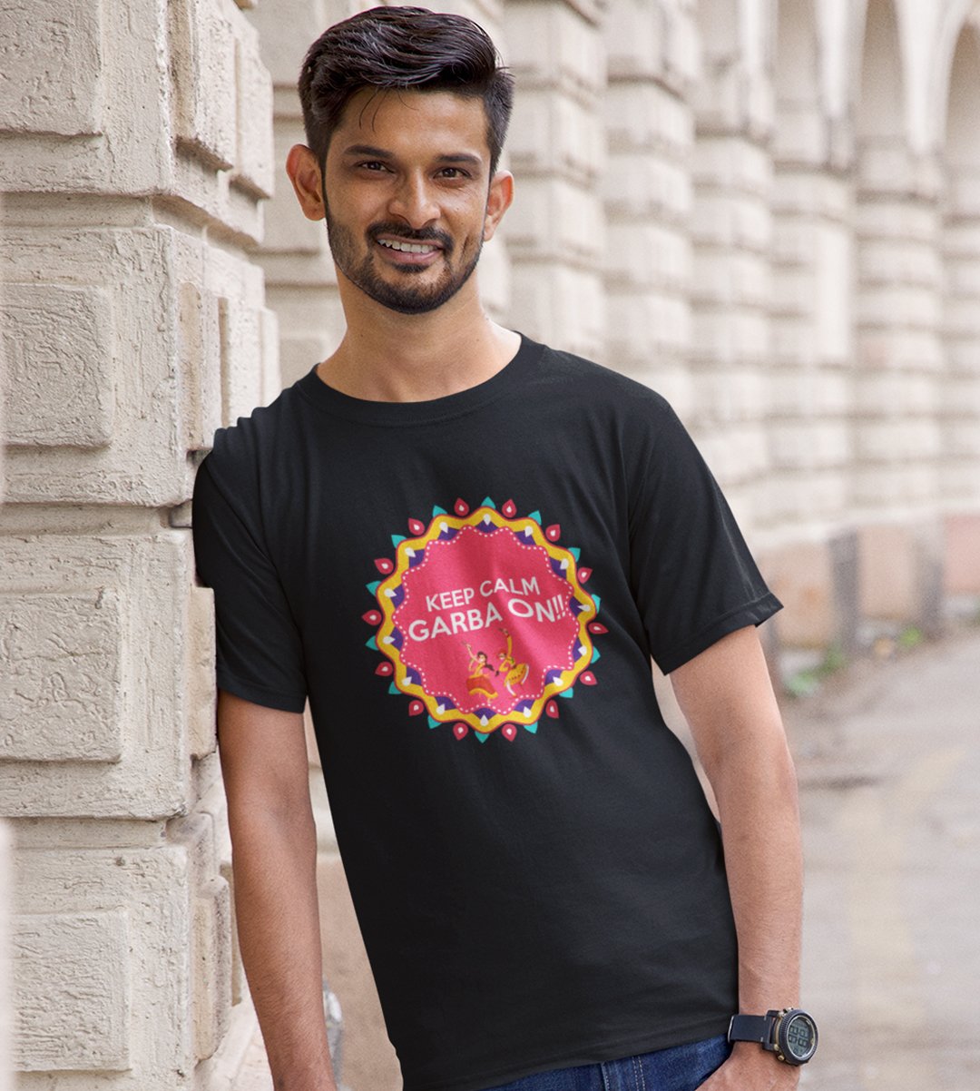 Keep calm, Garba on! printed unisex adults round neck cotton half-sleeve black tshirt specially for Navratri festival/ Durga puja
