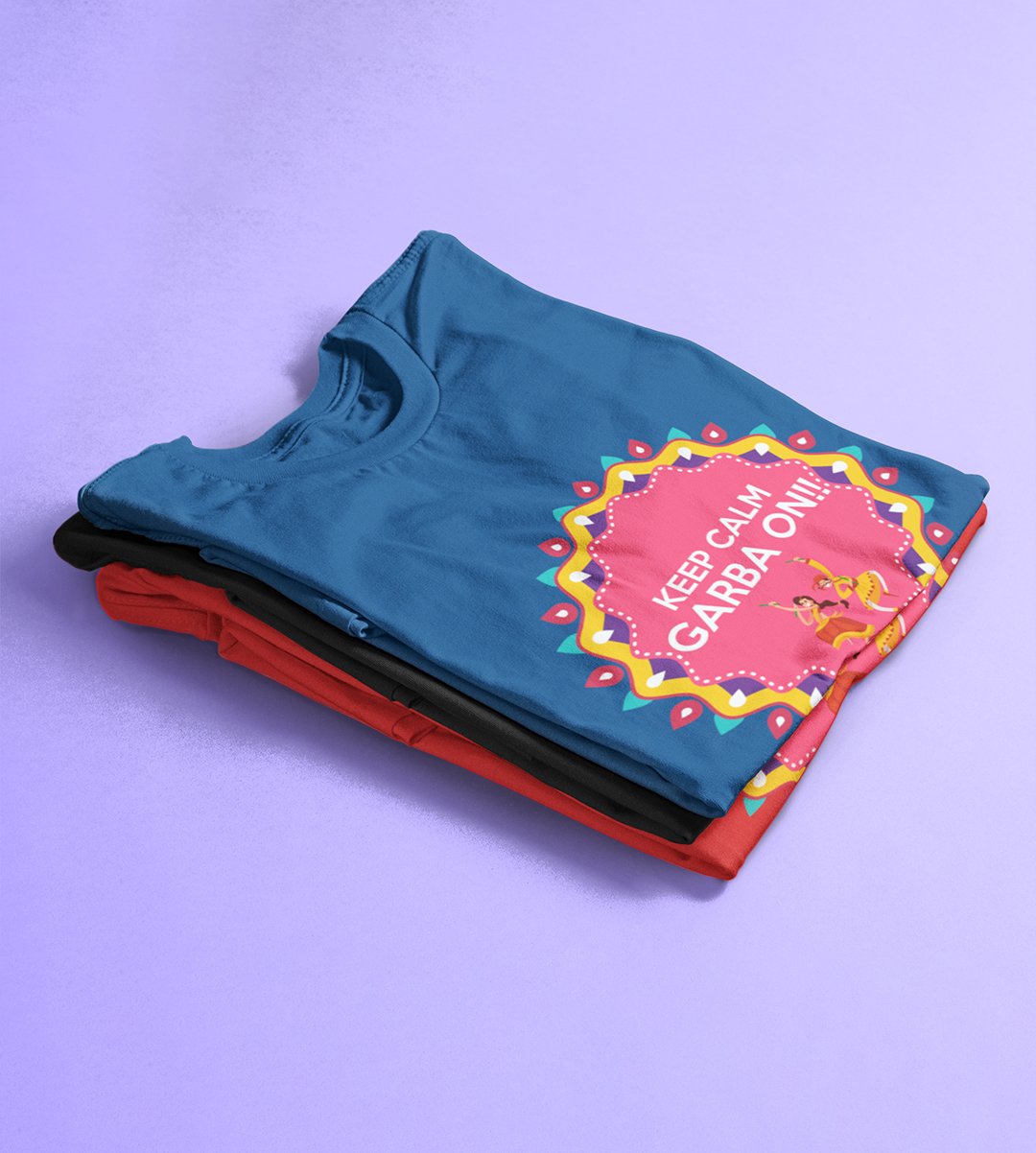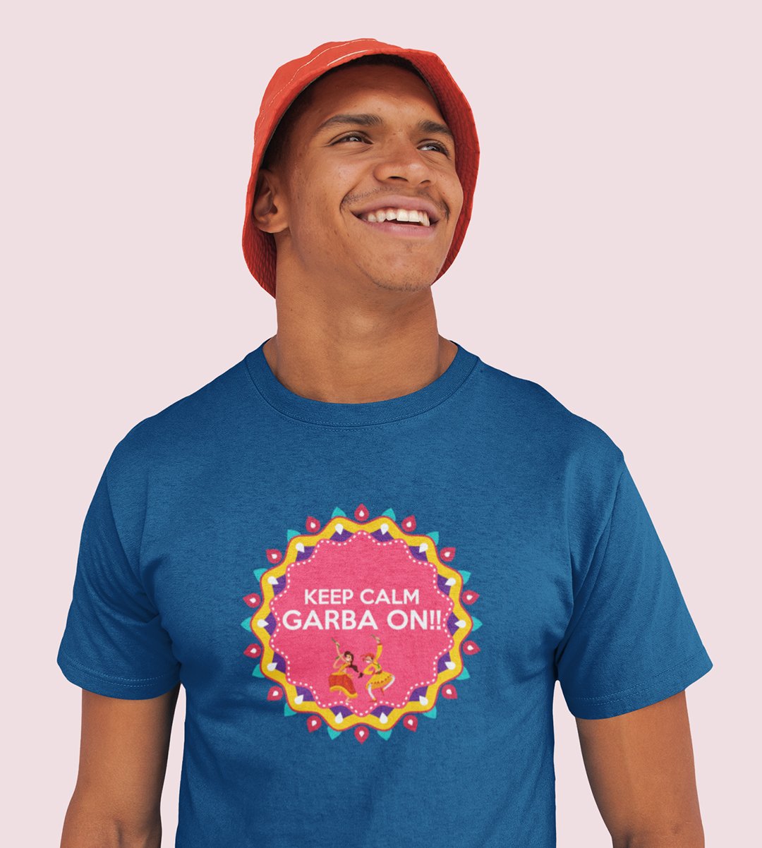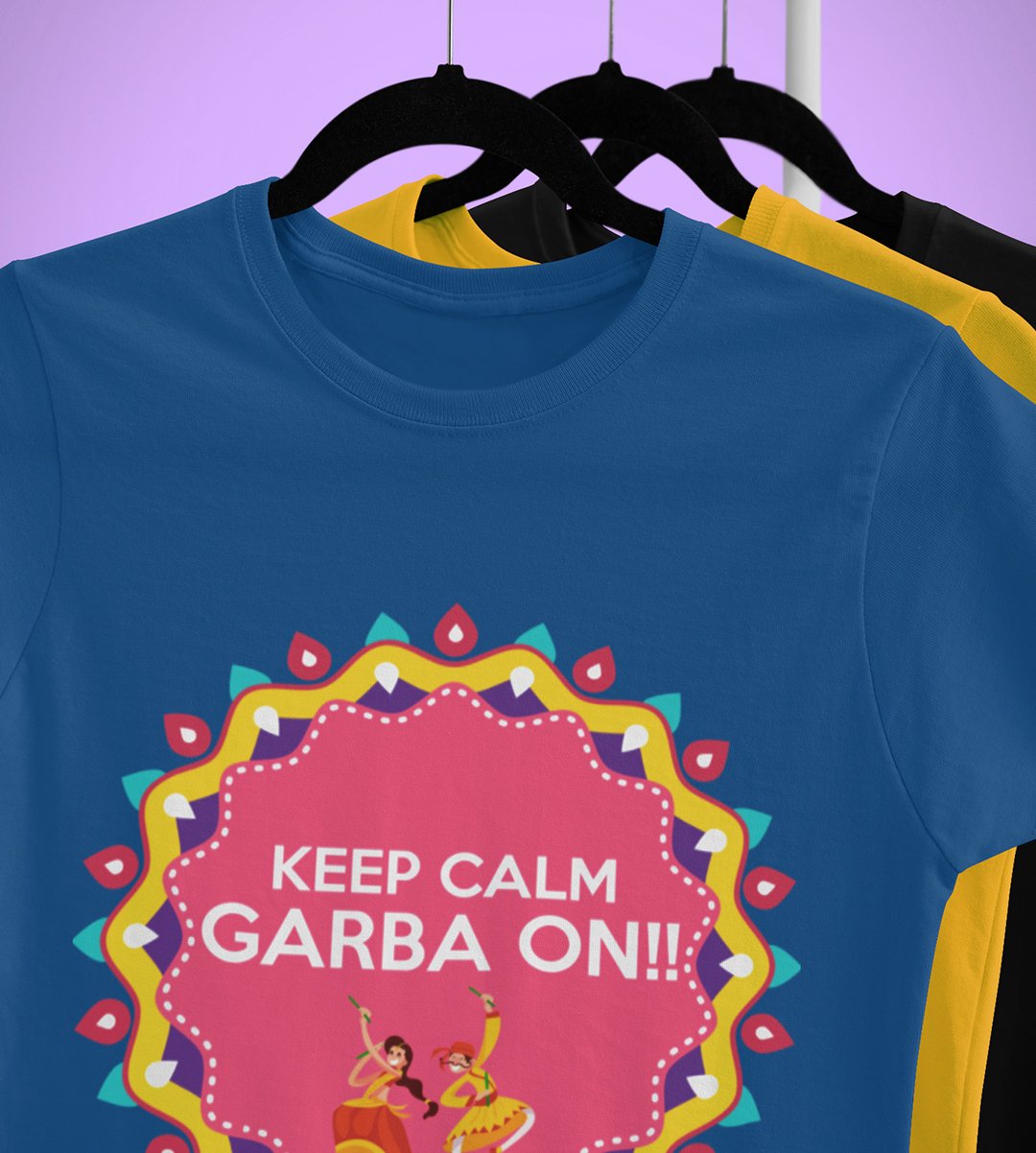 Keep calm, garba on printed unisex adults round neck cotton half-sleeve blue tshirt specially for Navratri festival/ Durga puja