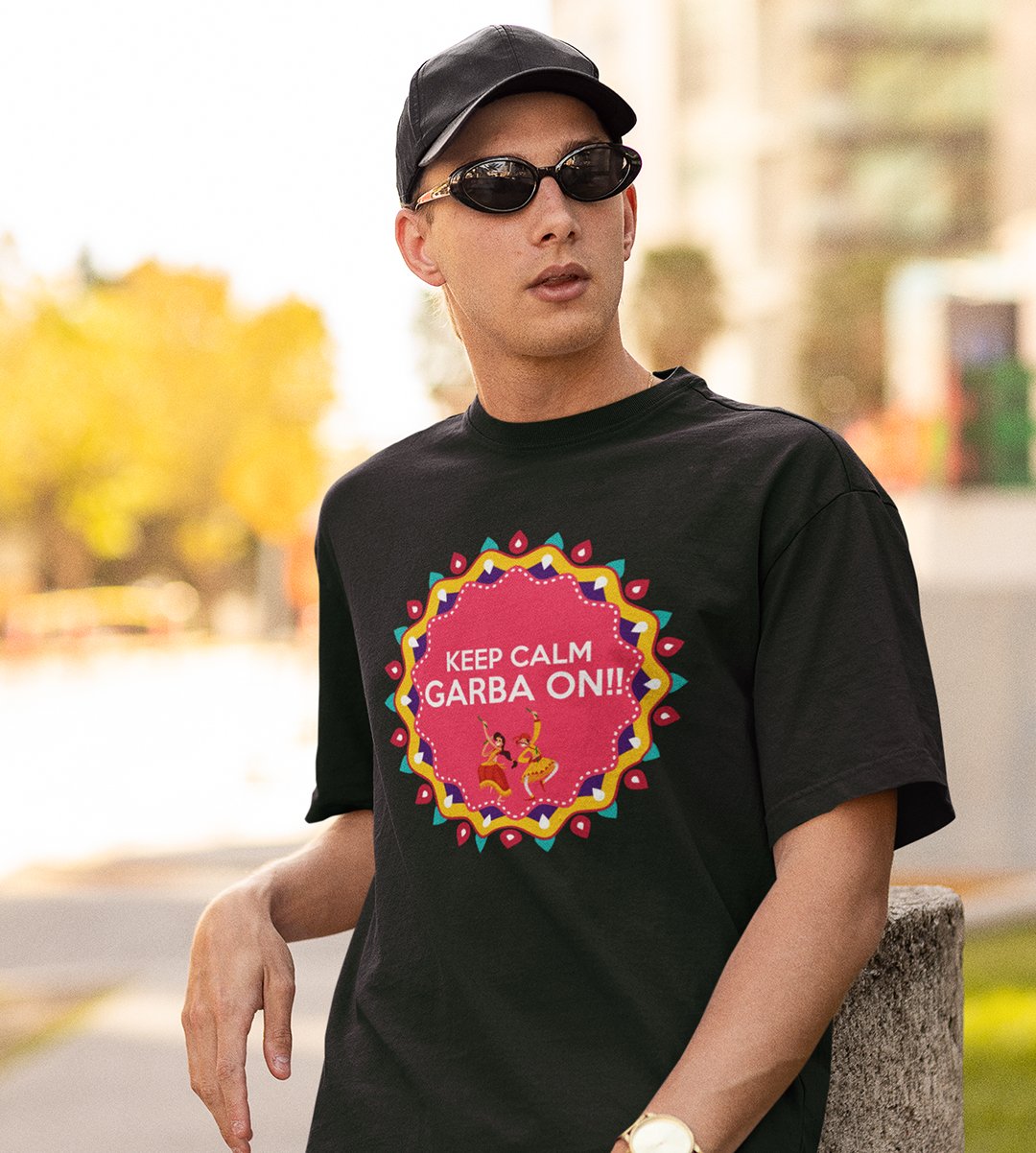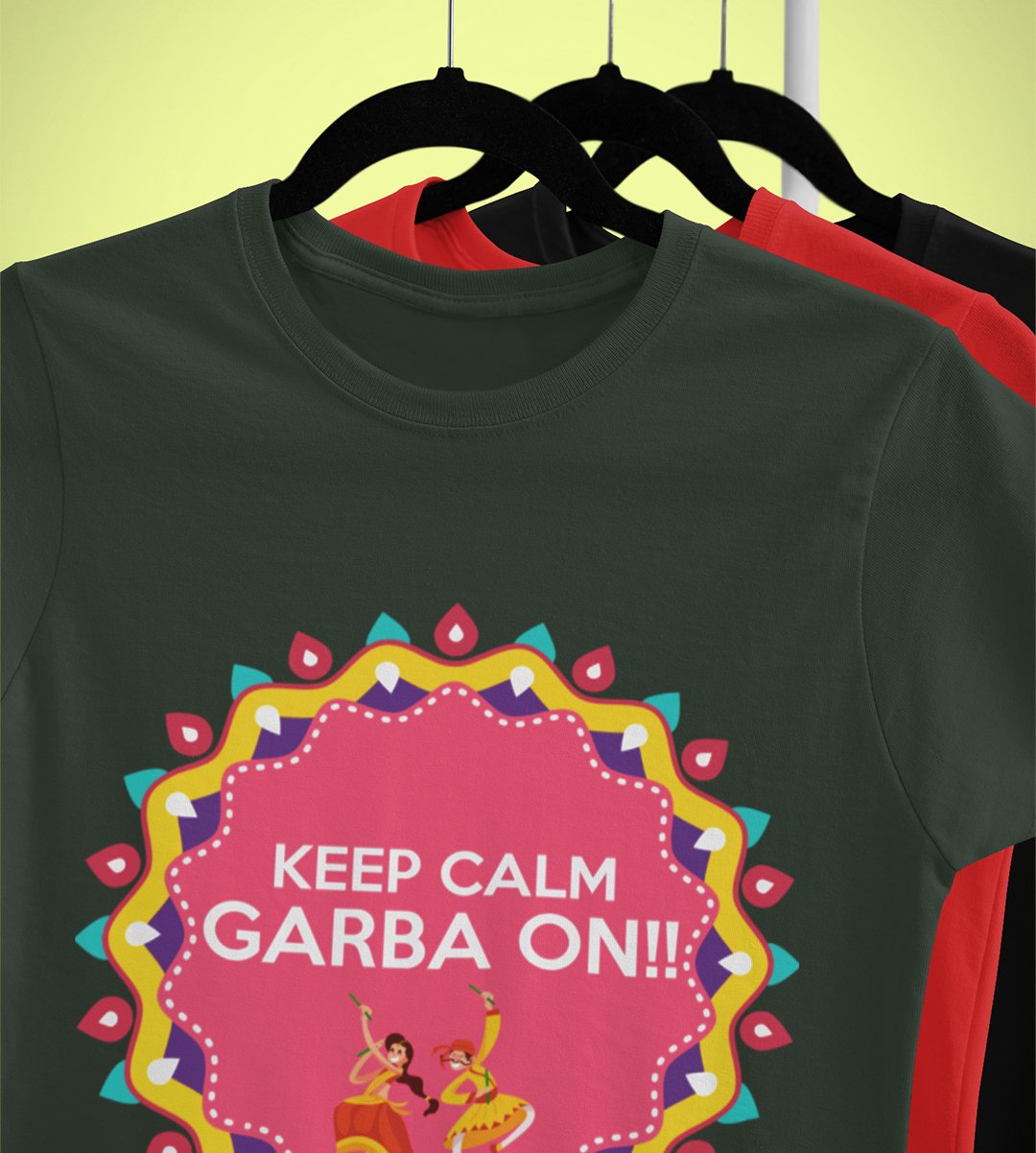 Keep calm, garba on printed unisex adults round neck cotton half-sleeve green tshirt specially for Navratri festival/ Durga puja