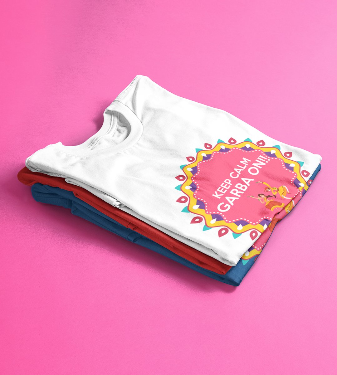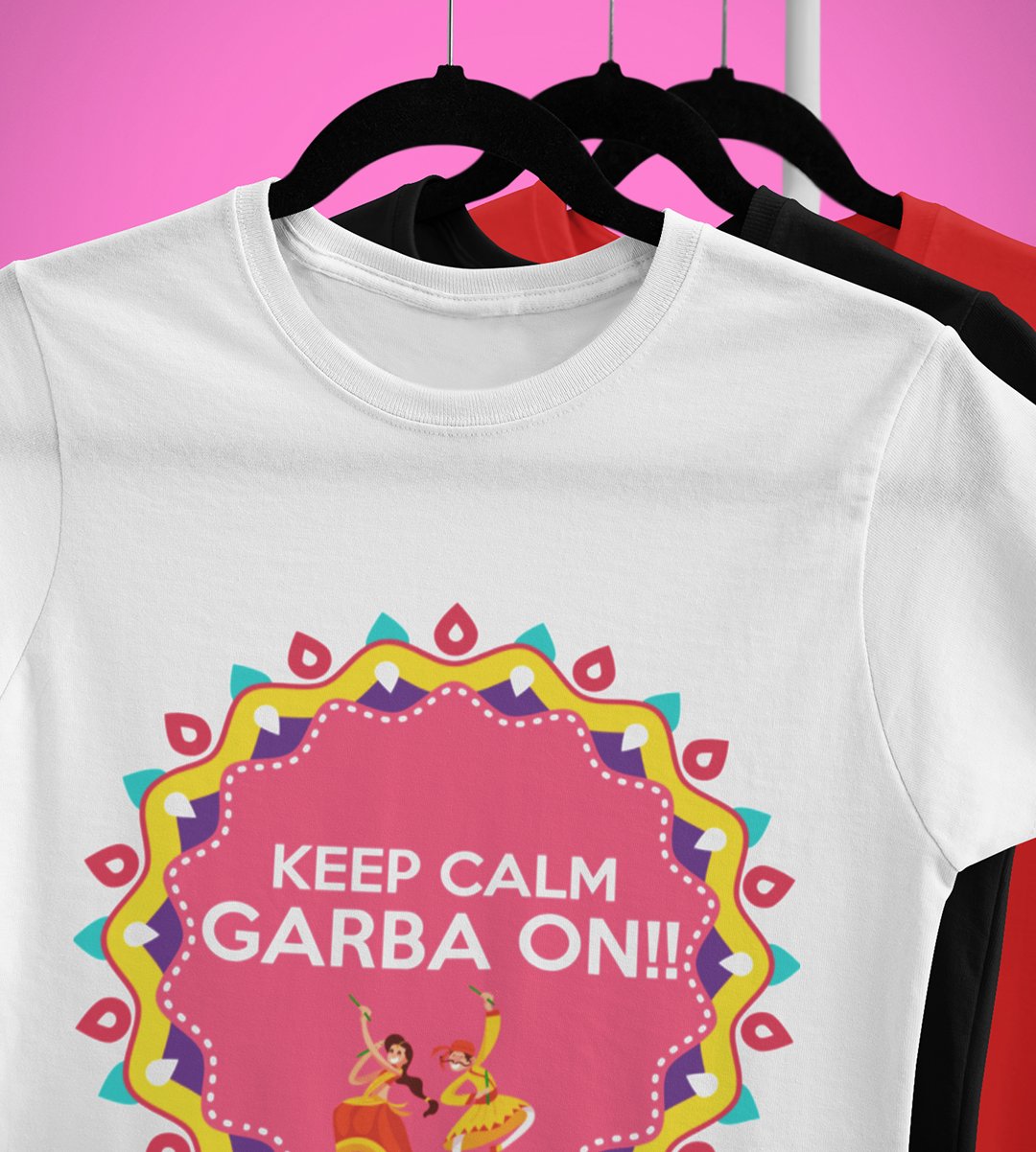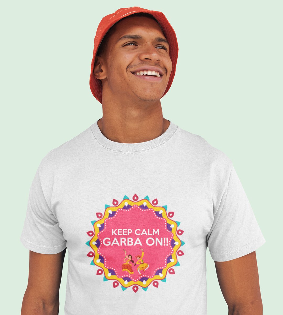 Keep calm, garba on printed unisex adults round neck cotton half-sleeve white tshirt specially for Navratri festival/ Durga puja