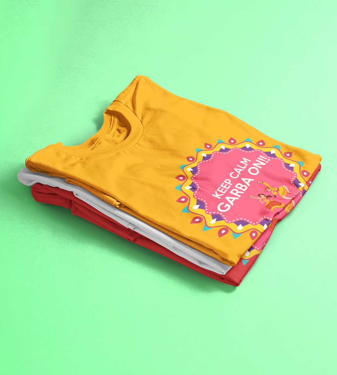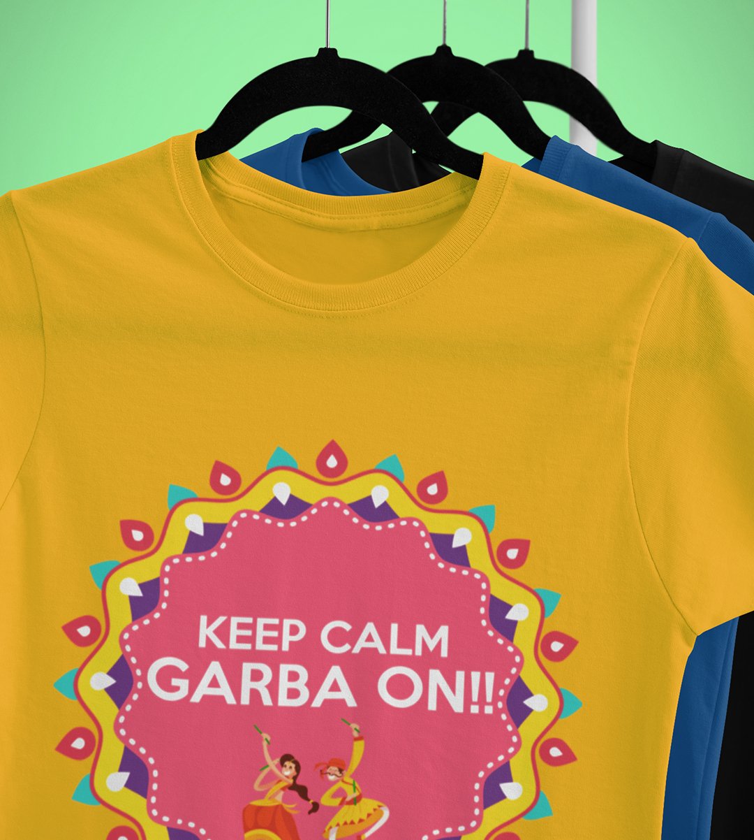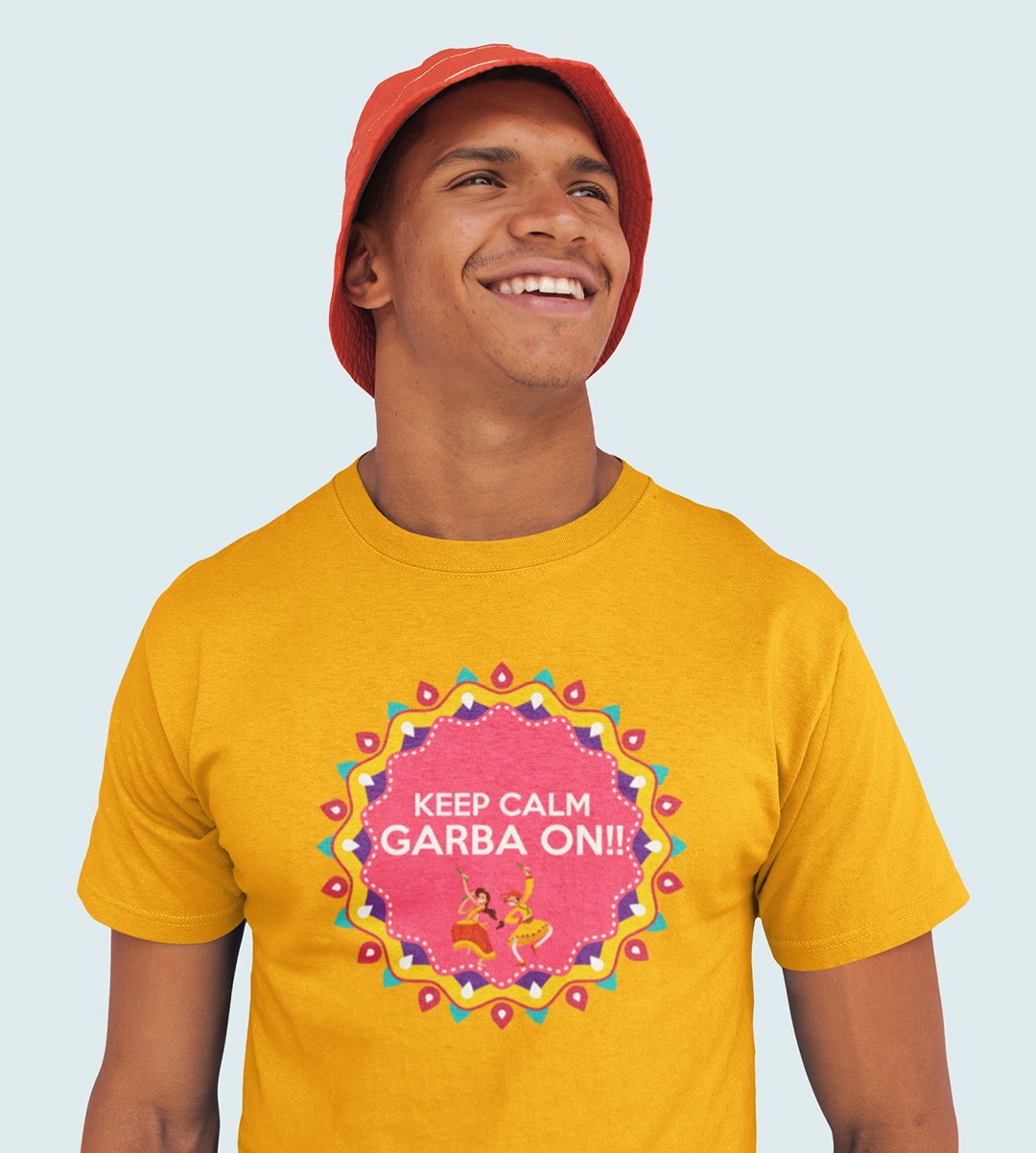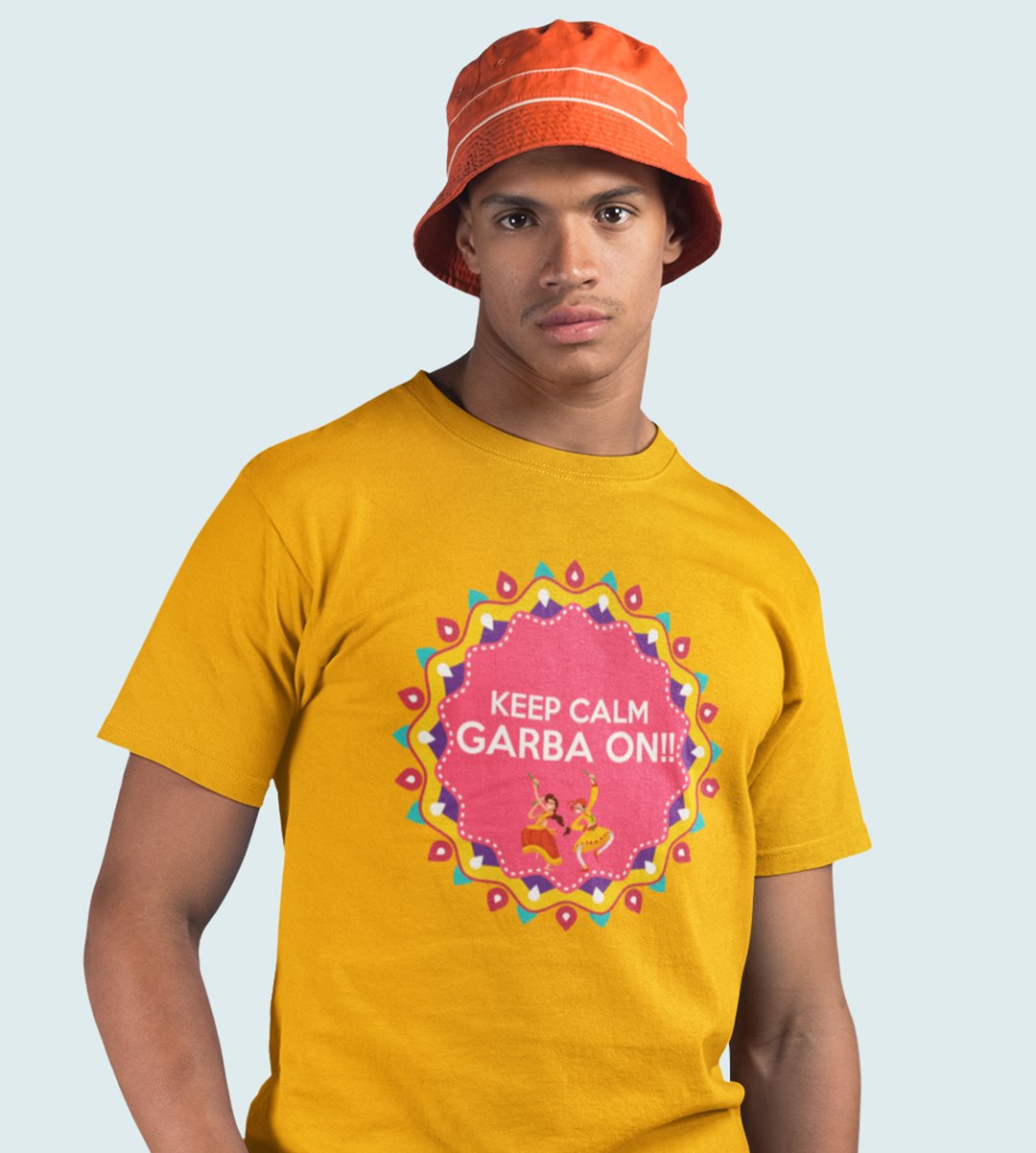 Keep calm, garba on printed unisex adults round neck cotton half-sleeve yellow tshirt specially for Navratri festival/ Durga puja