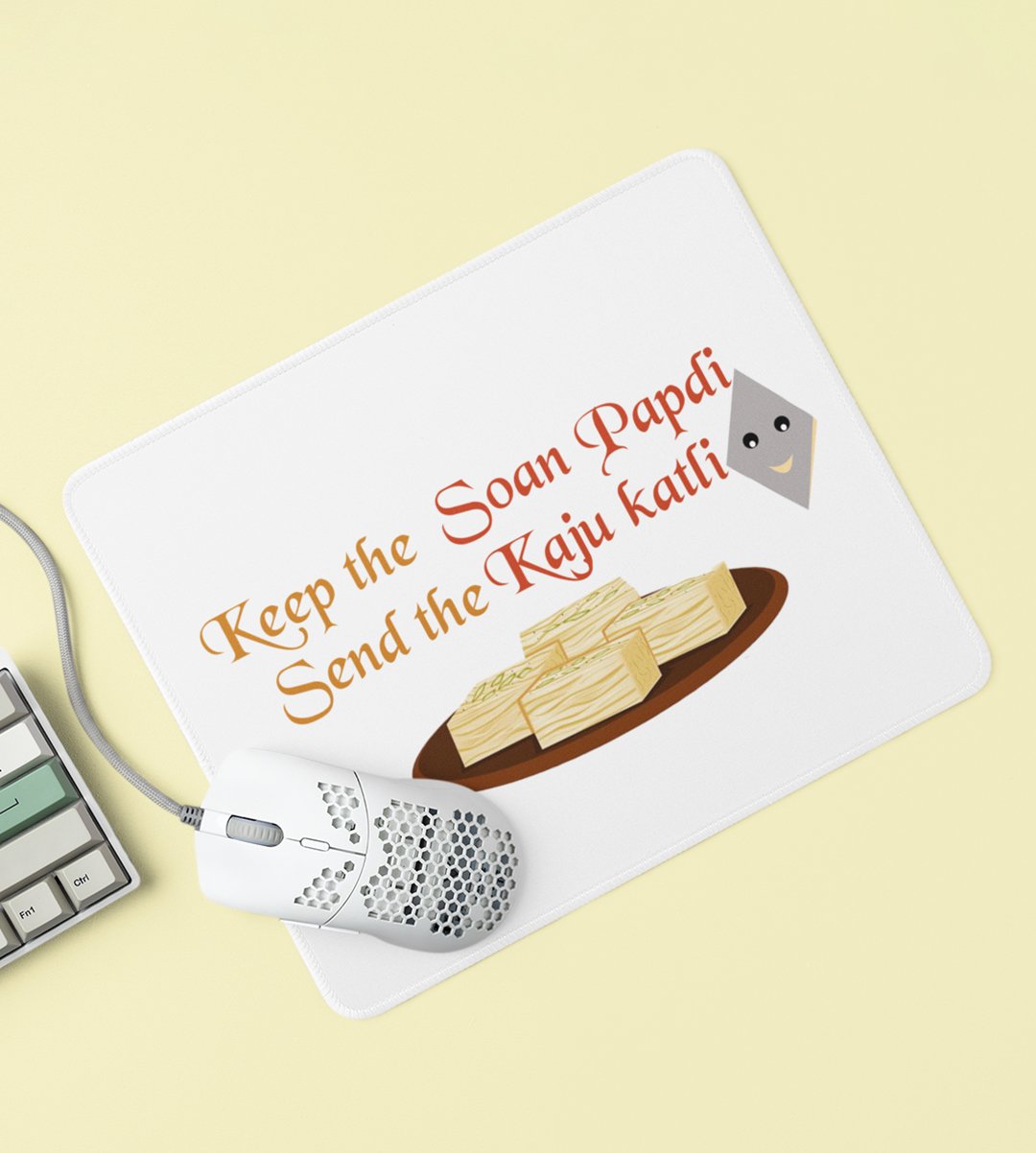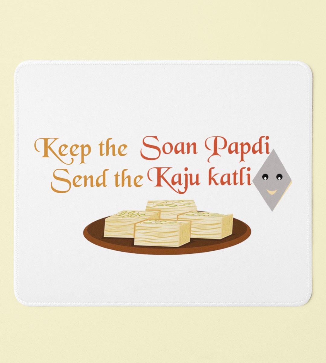 Choose your Diwali treats wisely with our Keep the Sonpapdi, Send the Kaju Katli Mouse Pad. It's a delightful play on the season's sweet dilemmas.