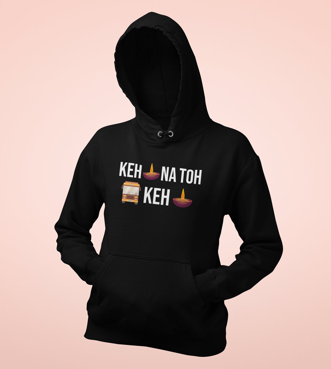 Keh diya na toh bas keh diya printed diwali themed black Hoodie specially for diwali festival