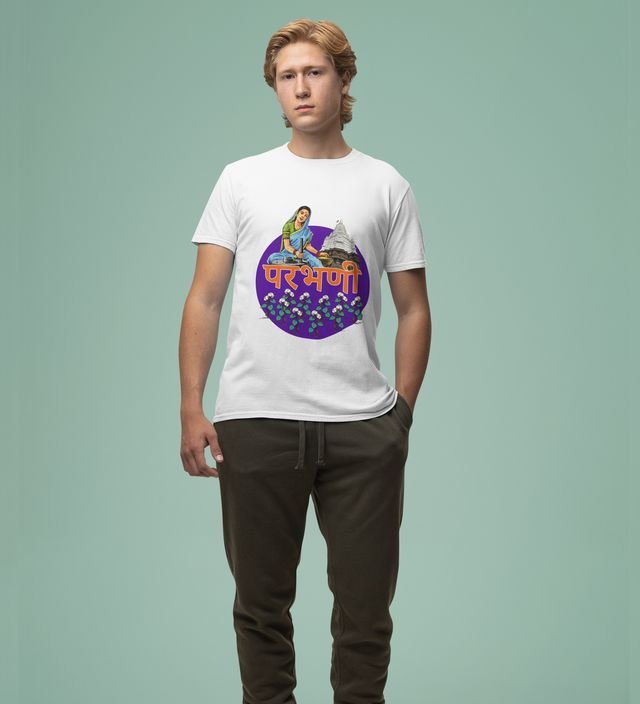 Khandoba's Divine Light & Cotton Fields: Parbhani's Agricultural Pride Graphic Printed White T-Shirt for Men