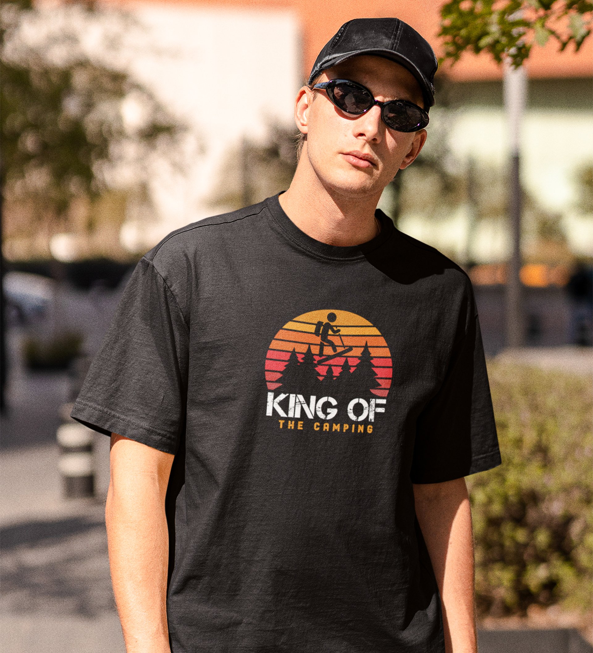 JD.TRENDS The Camping King Black Round Neck Cotton Half Sleeved Men's T-Shirt with Printed Graphics
