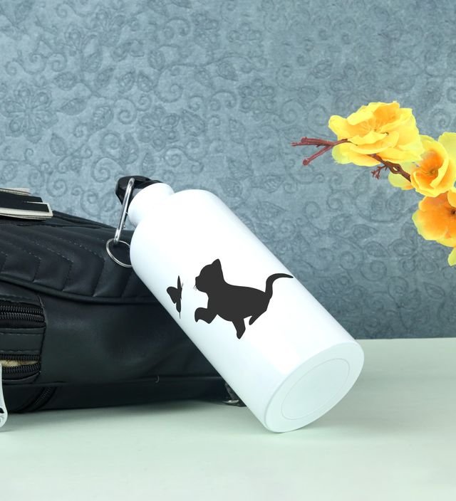 Kitten's Shadow Play Printed Aluminium Water Bottle 600ml