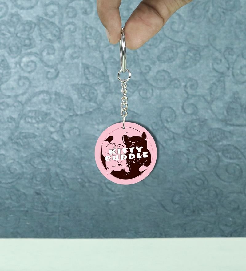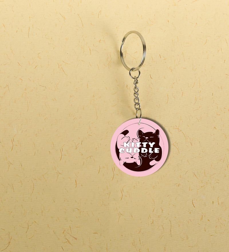 Kitty Cuddle Theme With Loving Art Printed Round Keychain Pack of 2