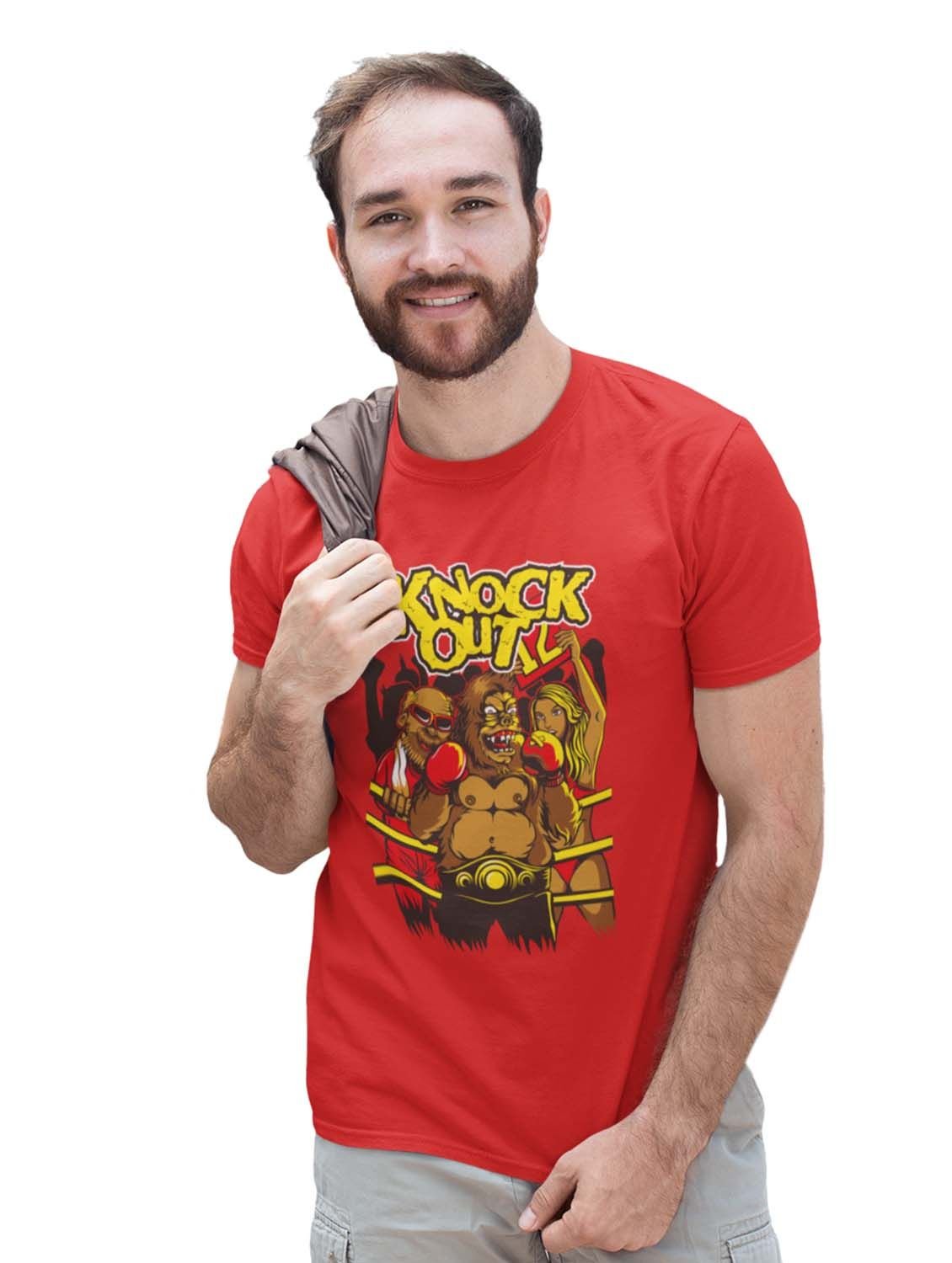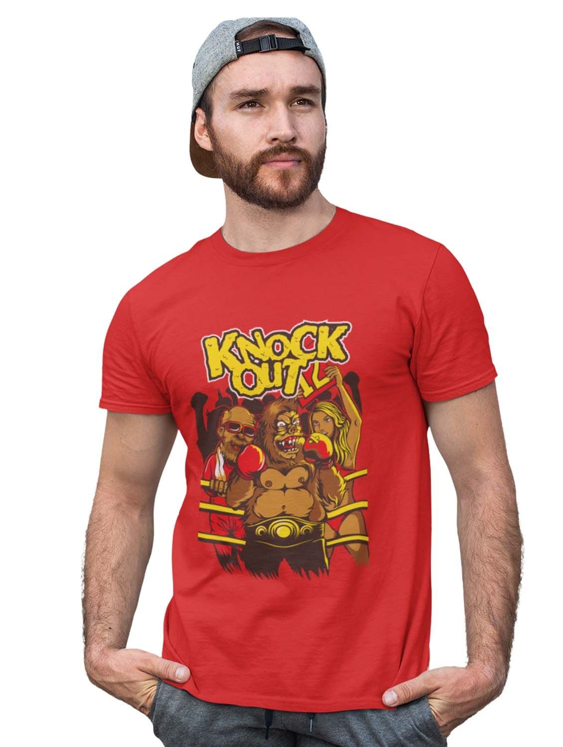 Boxer Monkey Red Round Neck Cotton Half Sleeved T-Shirt with Printed Graphics