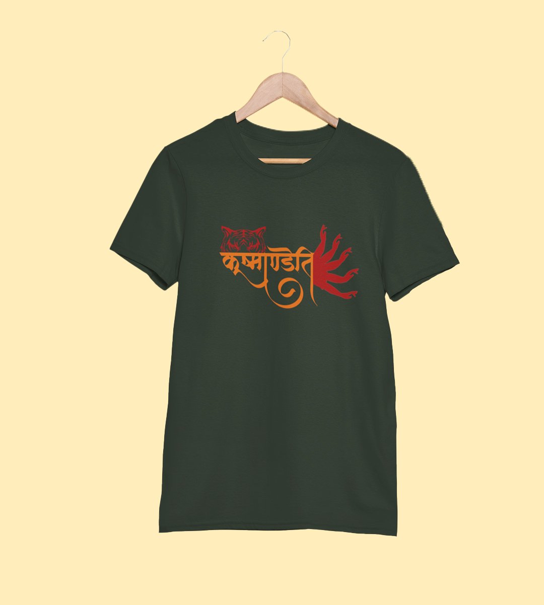 Kushmandani printed unisex adults round neck cotton half-sleeve green tshirt specially for Navratri festival/ Durga puja
