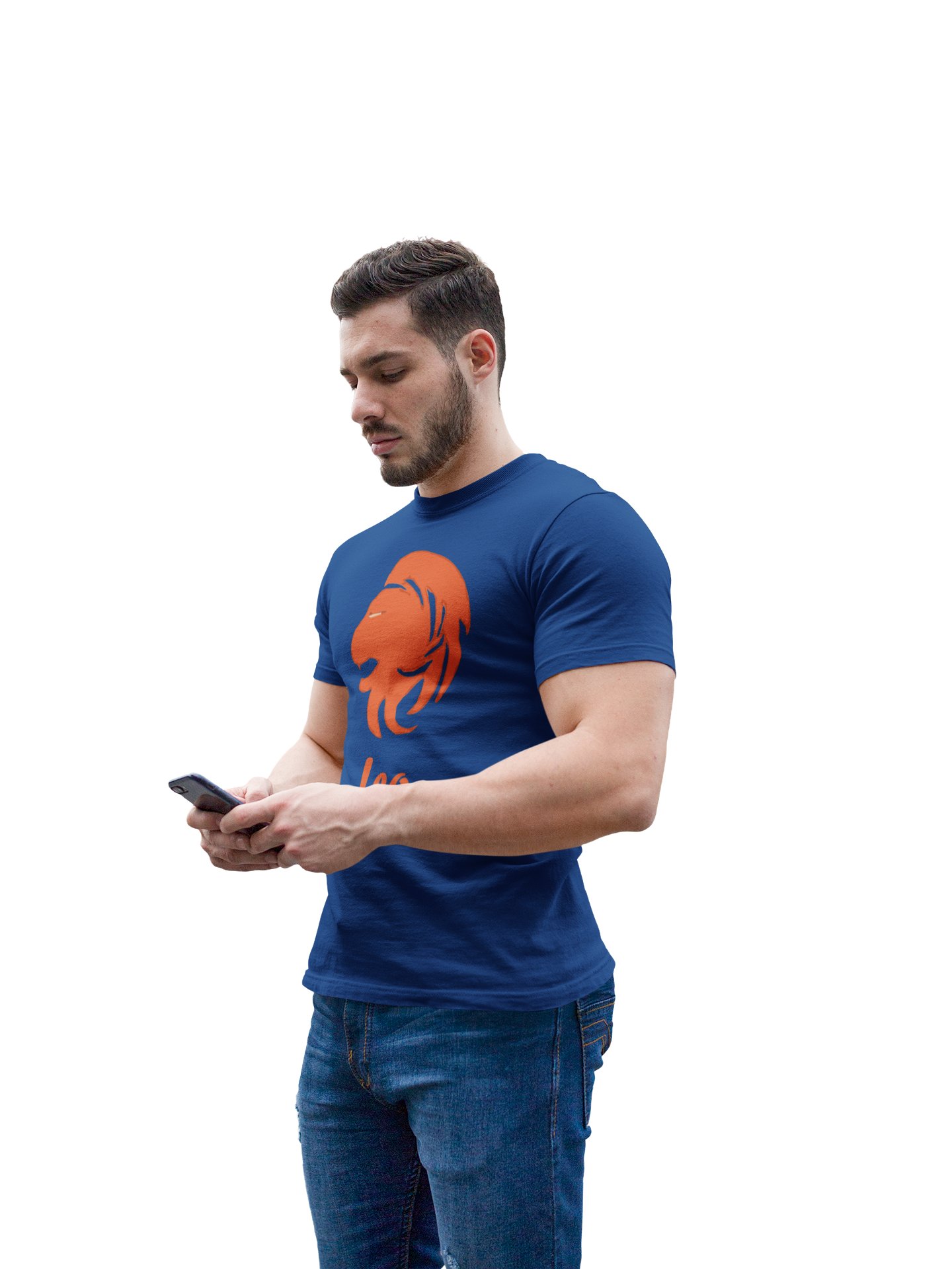 Leo (BG Red)(Blue T) - Printed Zodiac Sign Tshirts - Made especially for astrology lovers people