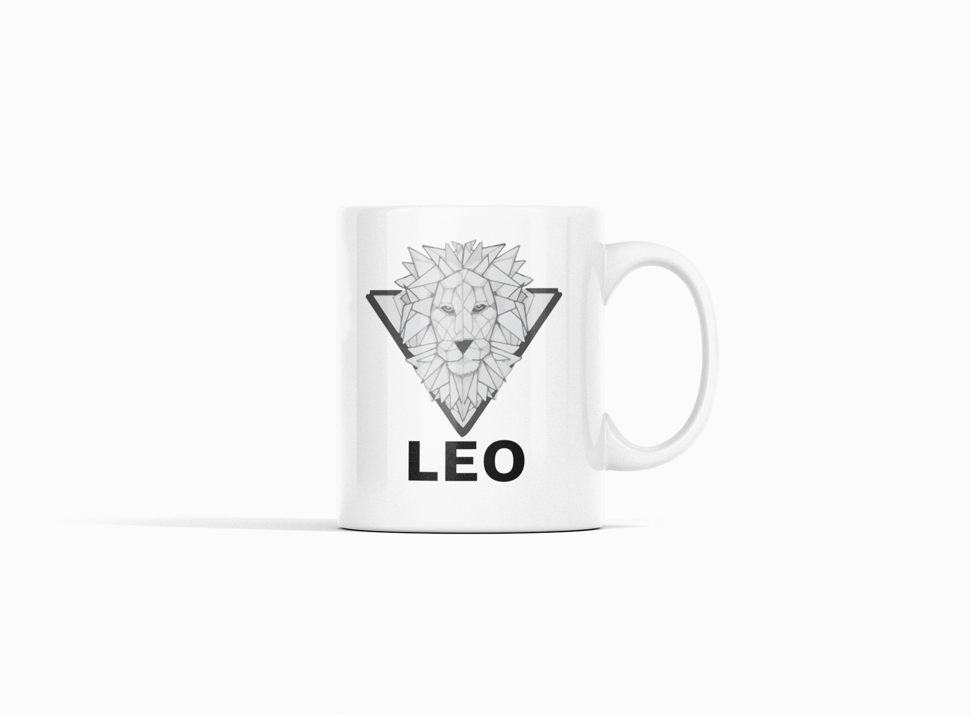 Leo, lion face- zodiac themed printed ceramic white coffee and tea mugs/ cups for astrology lovers
