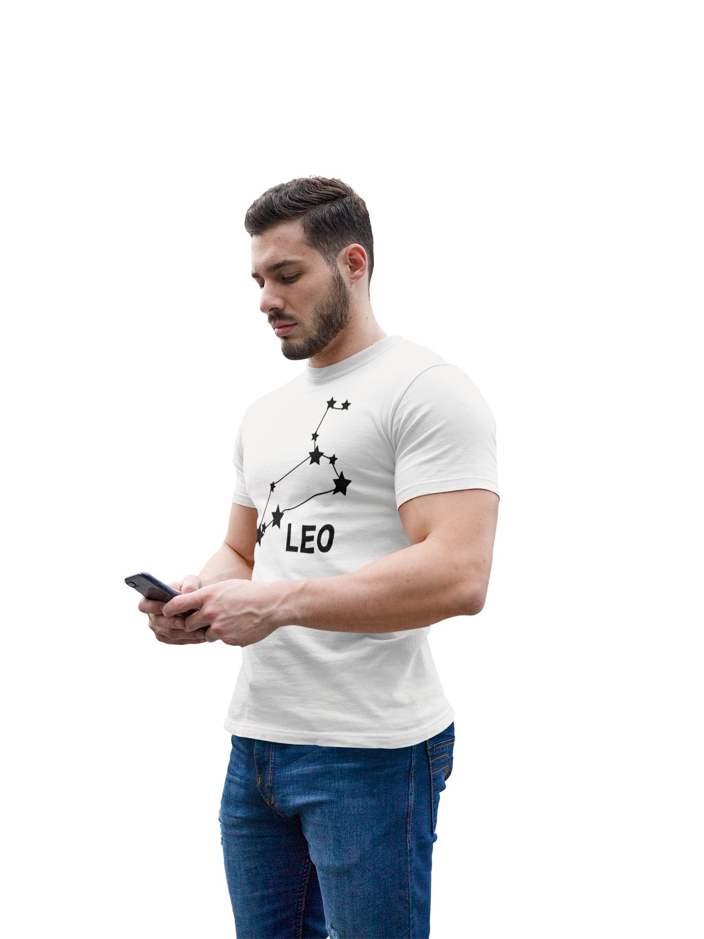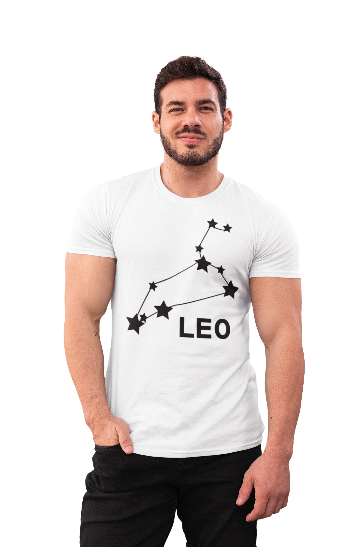Leo stars (BG Black) (White T) - Printed Zodiac Sign Tshirts - Made especially for astrology lovers people