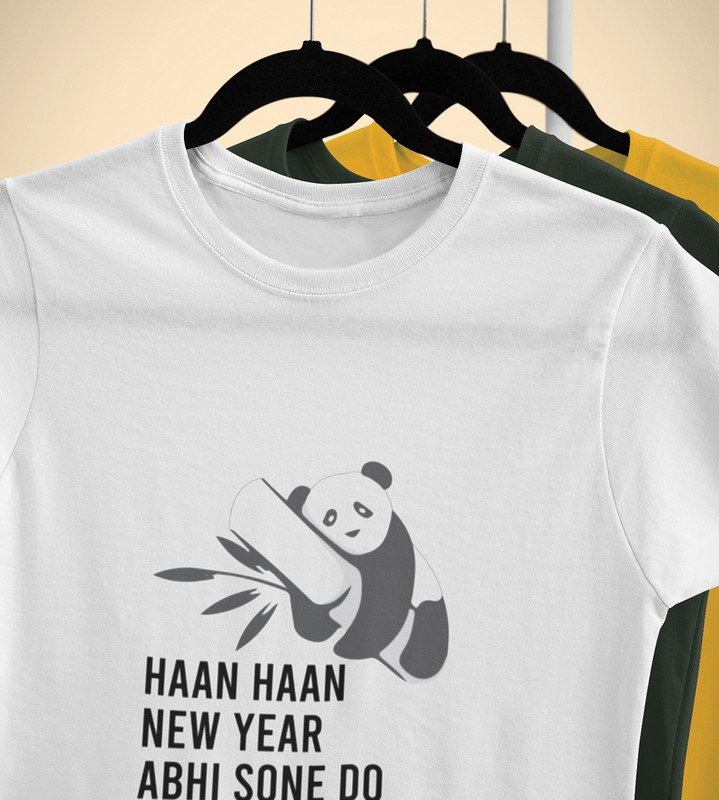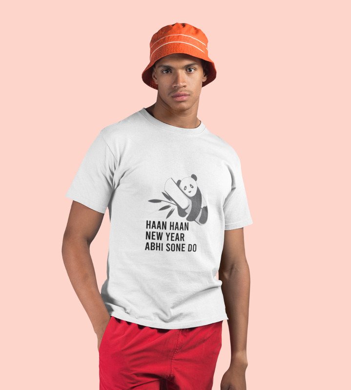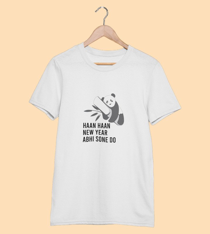 5. Let Me Sleep White New Year Printed T-shirt For Mens