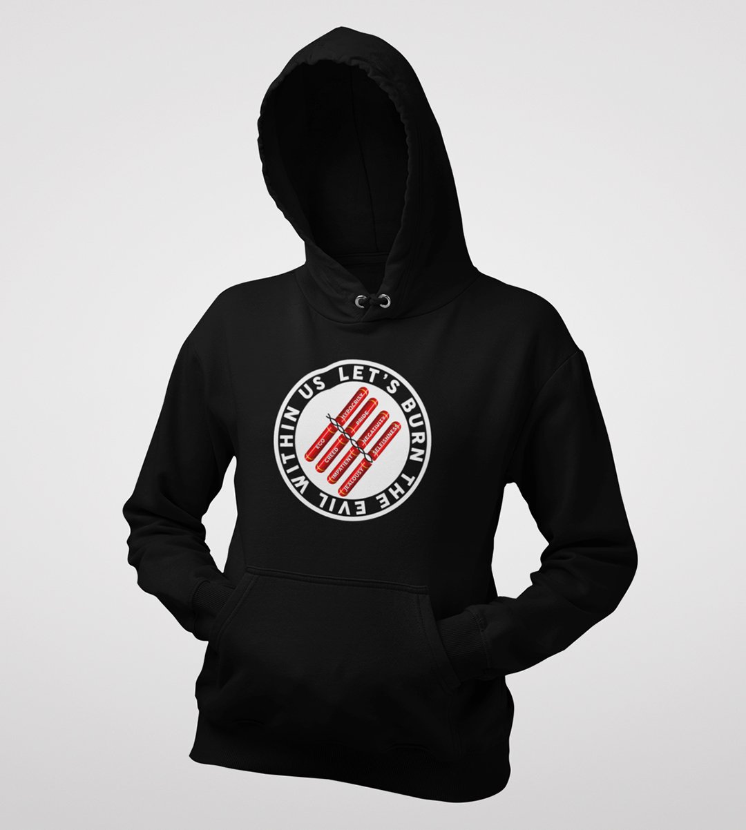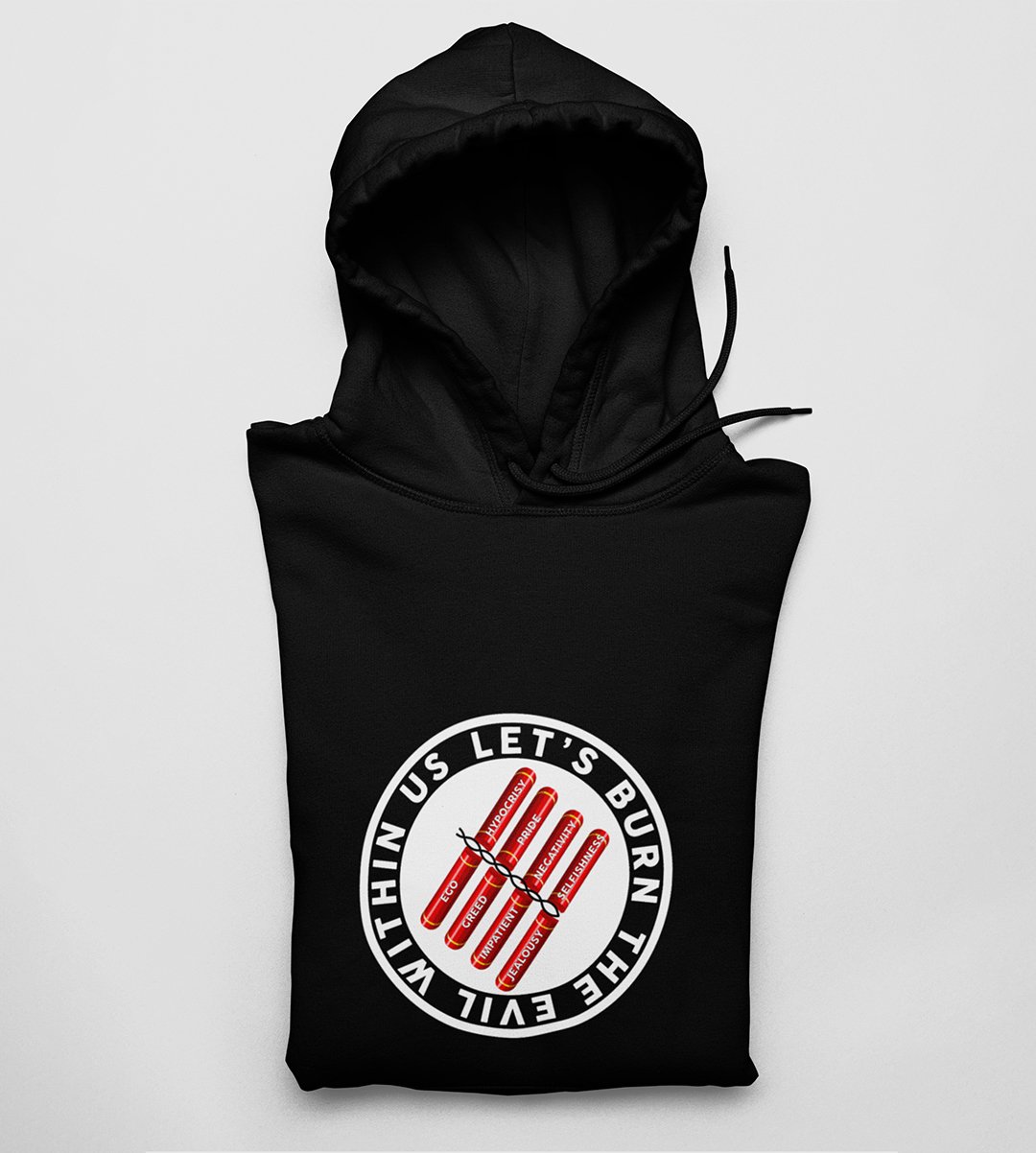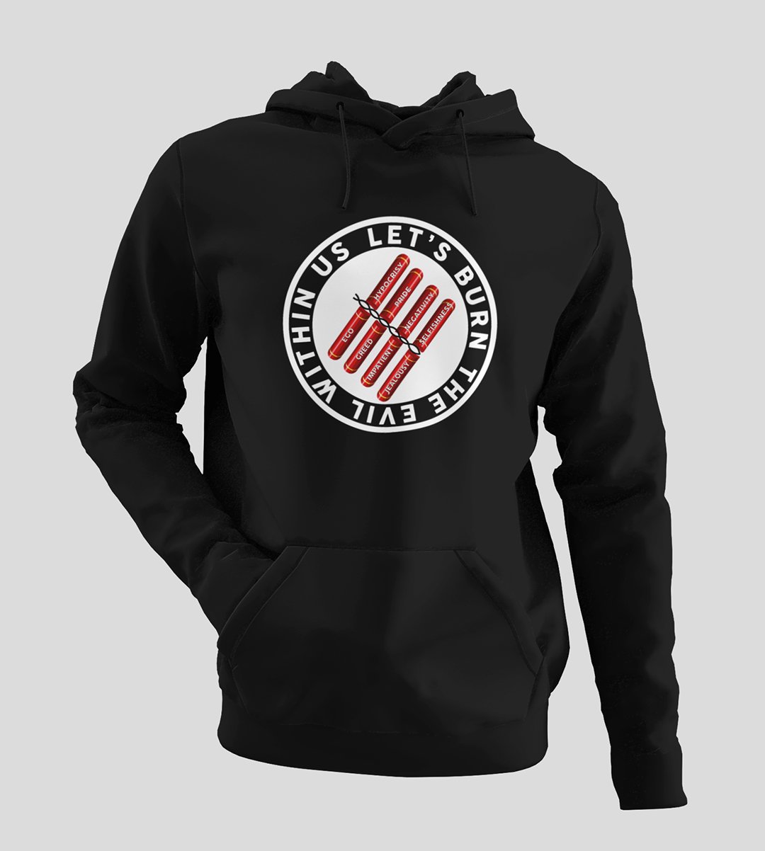 Ignite your inner light and inspire positive change with our "Burn the Evil Within Us" black Hoodie . This powerful message encourages self-reflection and personal growth. With every sip, you're reminded of the potential for transformation and the pursuit of goodness. Let this black Hoodie be a daily source of motivation and positivity.