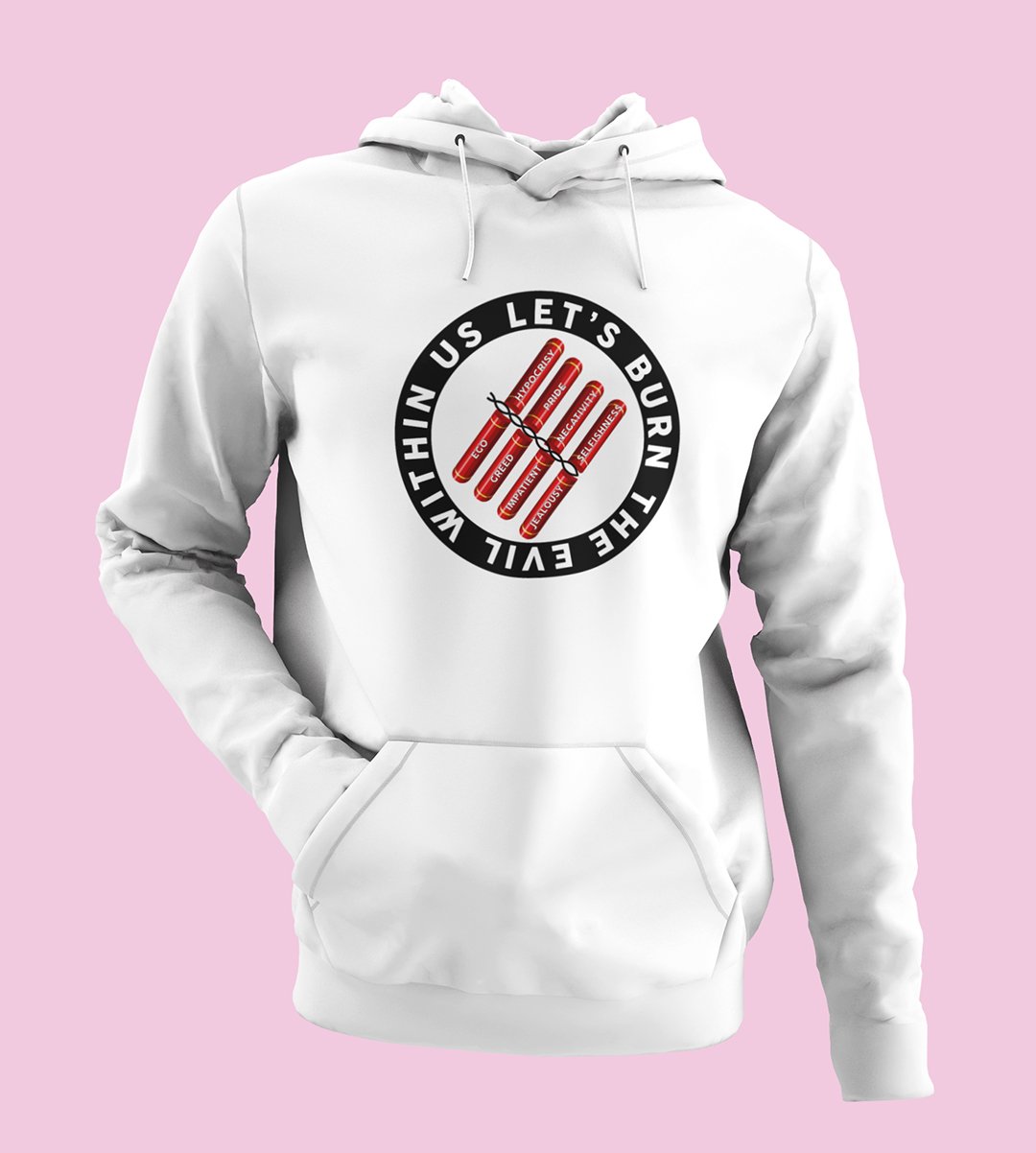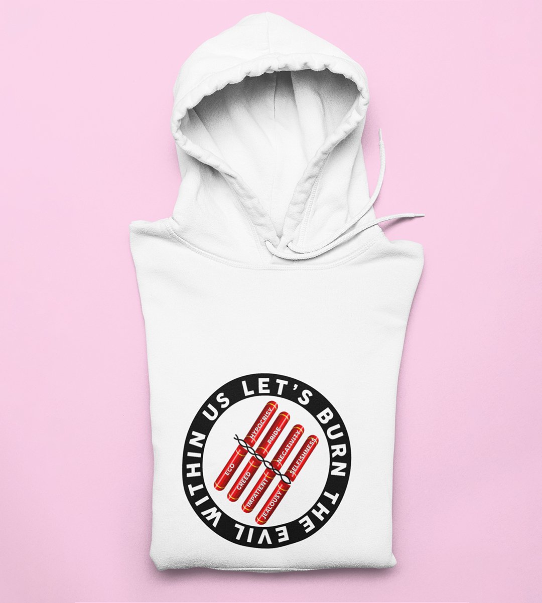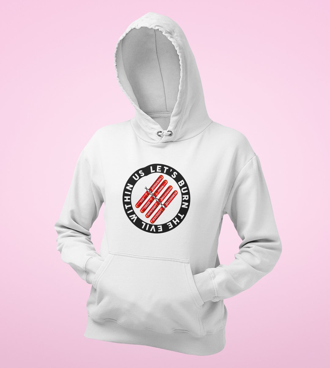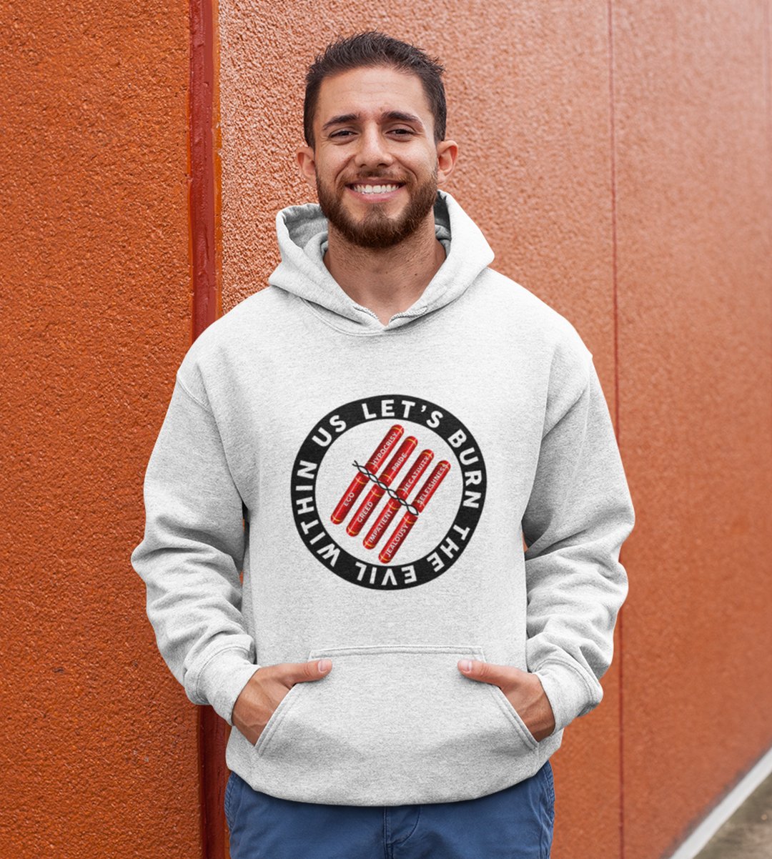 Ignite your inner light and inspire positive change with our "Burn the Evil Within Us" White Hoodie . This powerful message encourages self-reflection and personal growth. With every sip, you're reminded of the potential for transformation and the pursuit of goodness. Let this White Hoodie be a daily source of motivation and positivity.