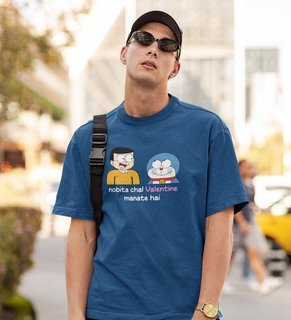 Let's Celebrate Valentine: Printed (Blue) T-Shirt For Singles