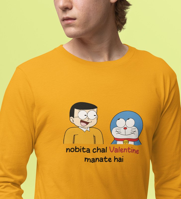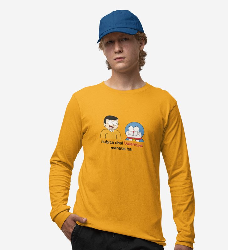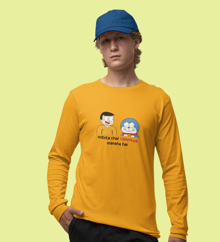 Let's Celebrate Valentine: Printed (yellow) Full Sleeve T-Shirt For Singles