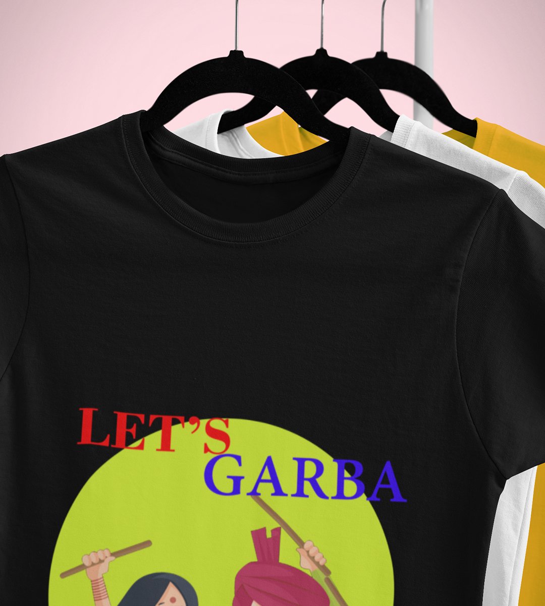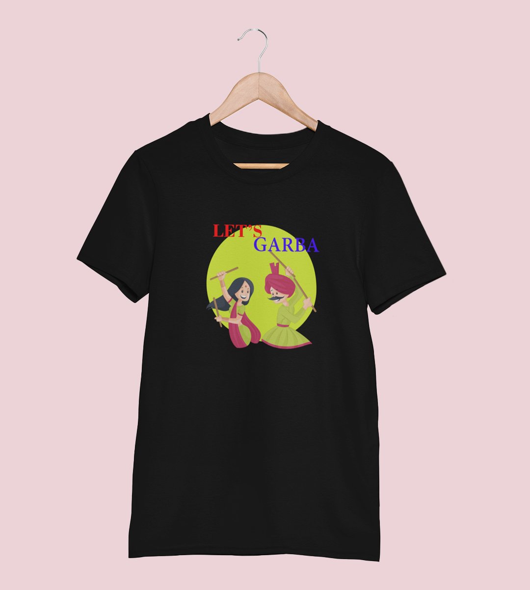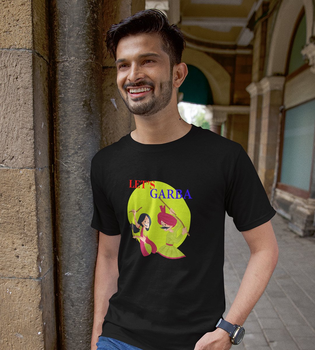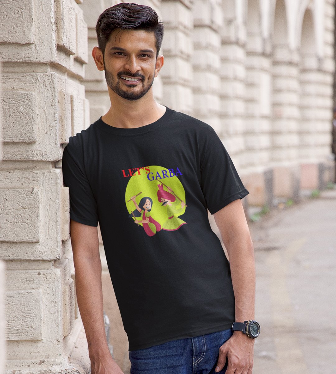 Let's garba (BG green) printed unisex adults round neck cotton half-sleeve black tshirt specially for Navratri festival/ Durga puja