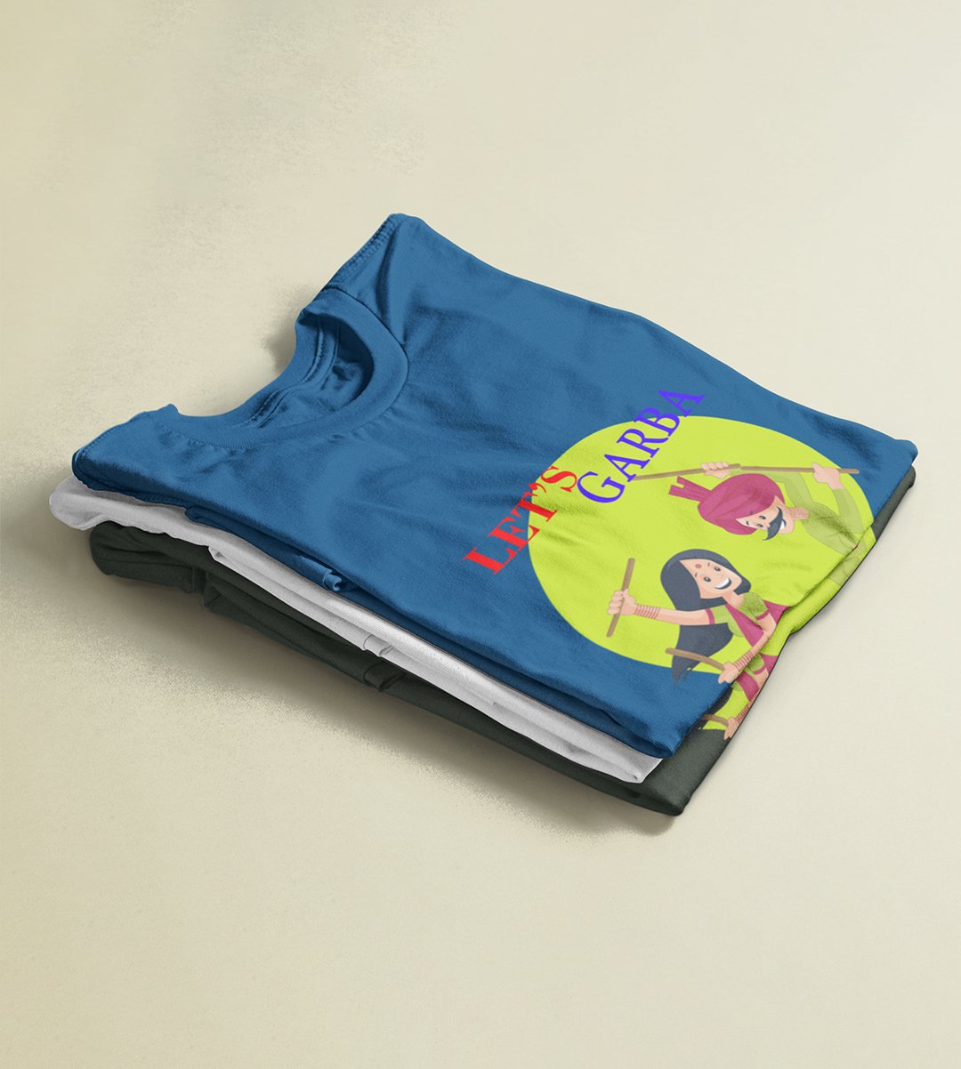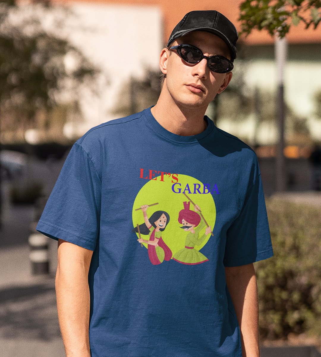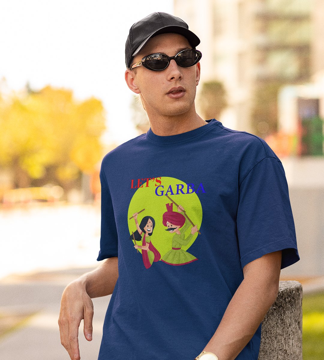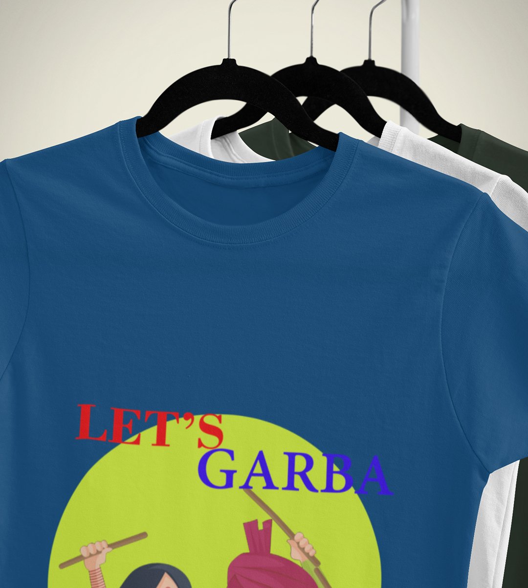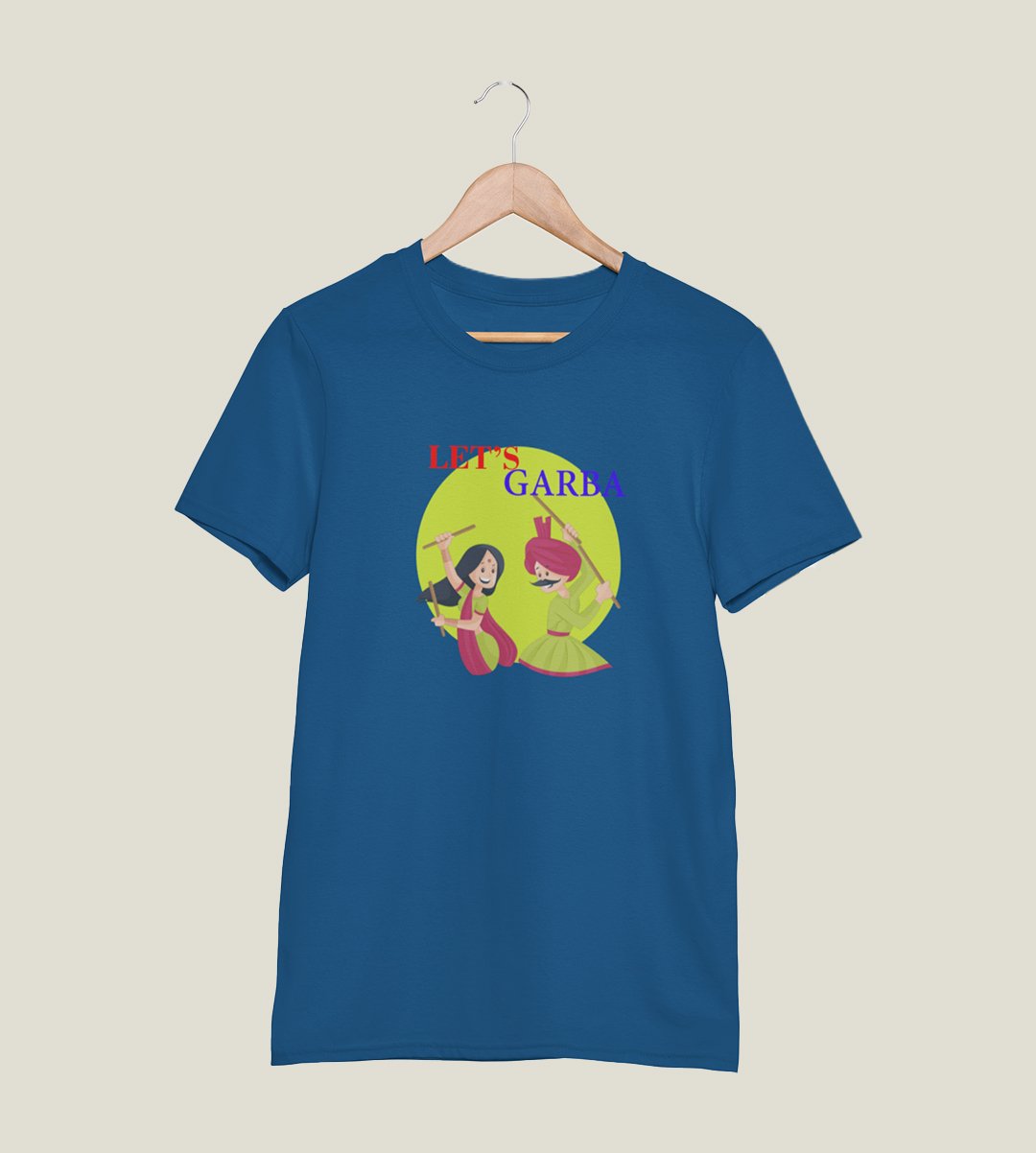 Let's garba printed unisex adults round neck cotton half-sleeve blue tshirt specially for Navratri festival/ Durga puja