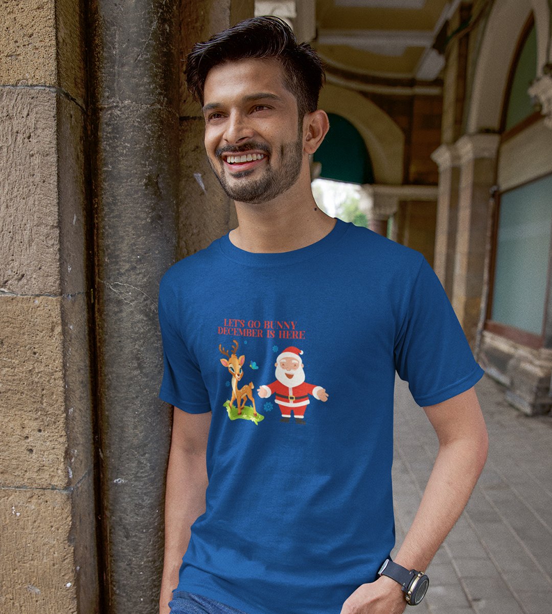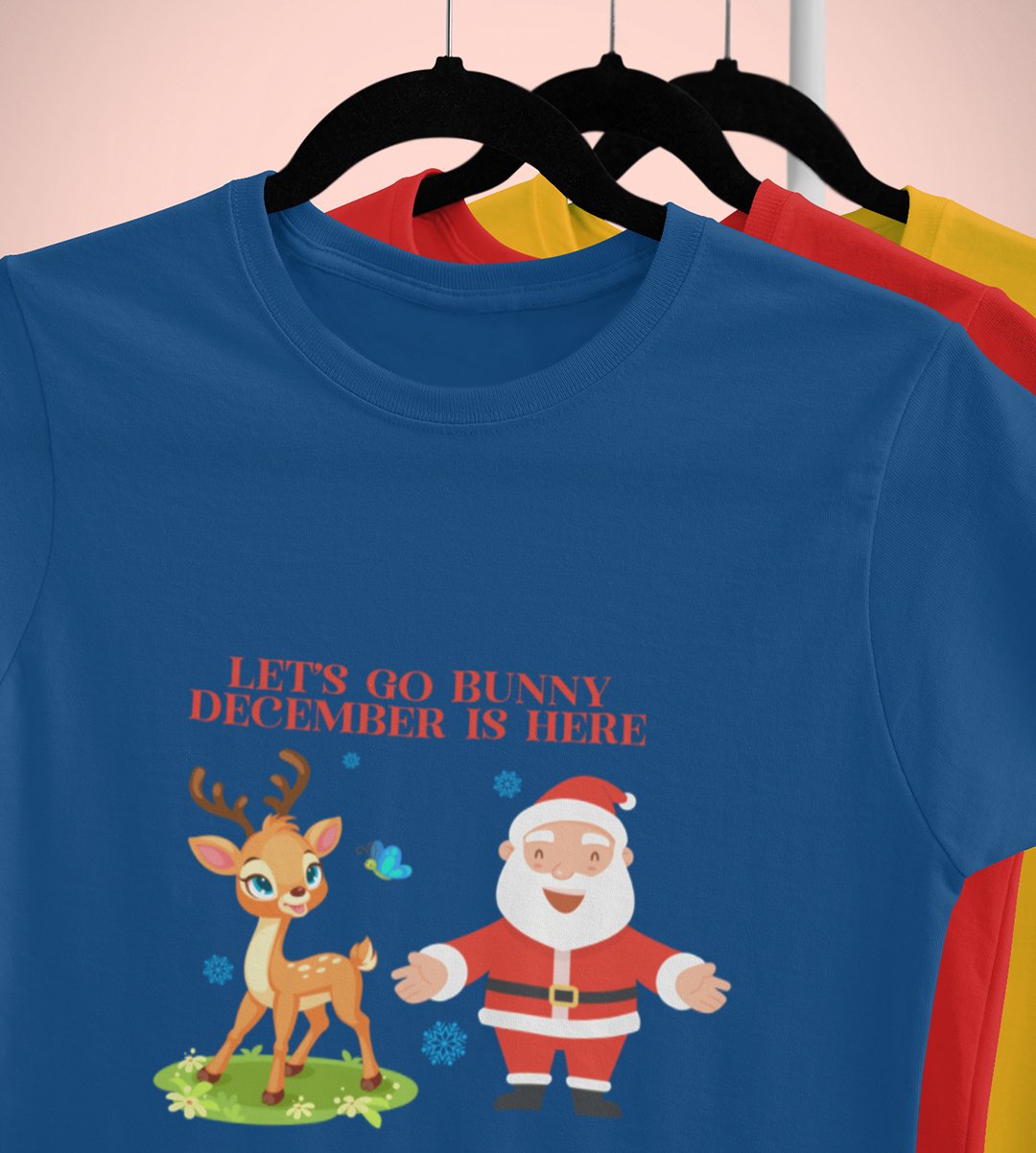 Let's Go December Is Here: Funny Printed T-shirt (Blue) Best Gift For Boys Girls