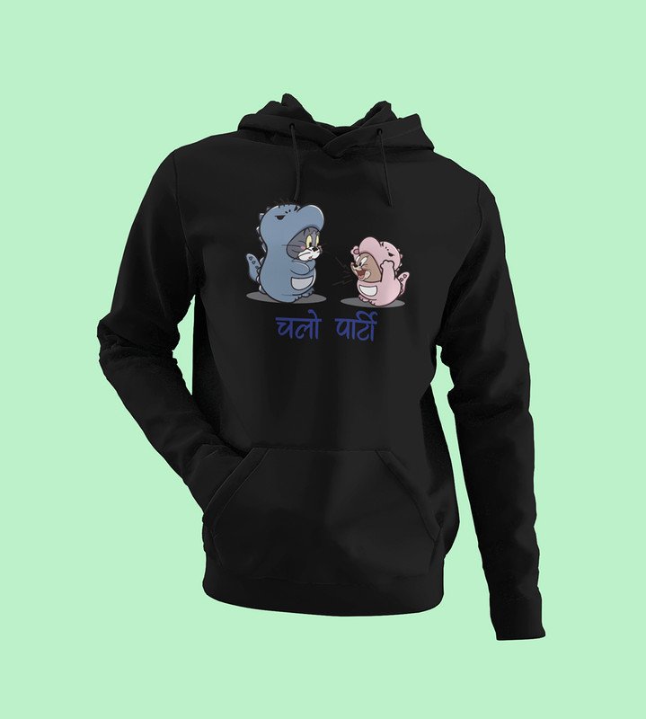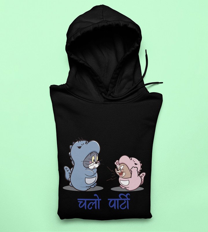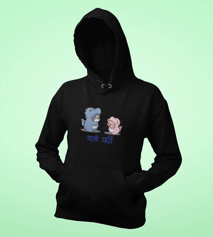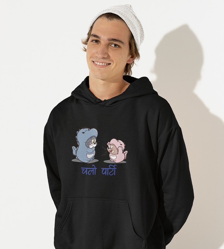 Let's Party, Black Graphic Printed Hoodies For Mens Boys